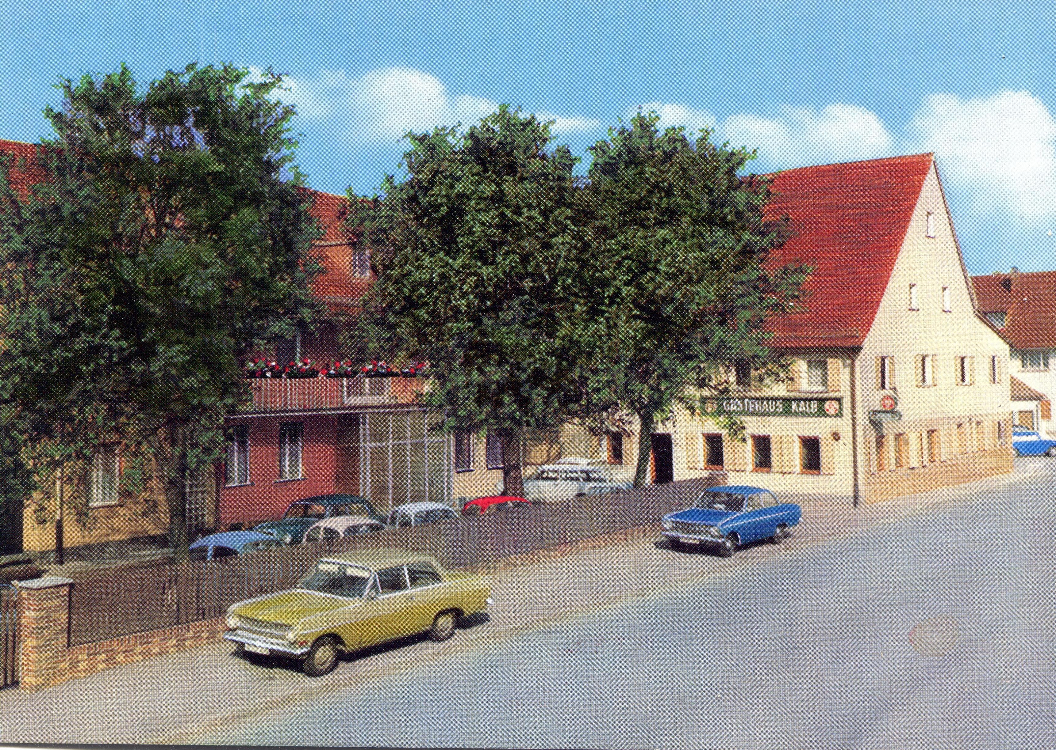 | Beschreibung | Ansichtskarte vom gut frequentierten Parkplatz innen und 2 Opel Rekord A außen vom Gästehaus Kalb (Eigenauflage) von 1973 | ||