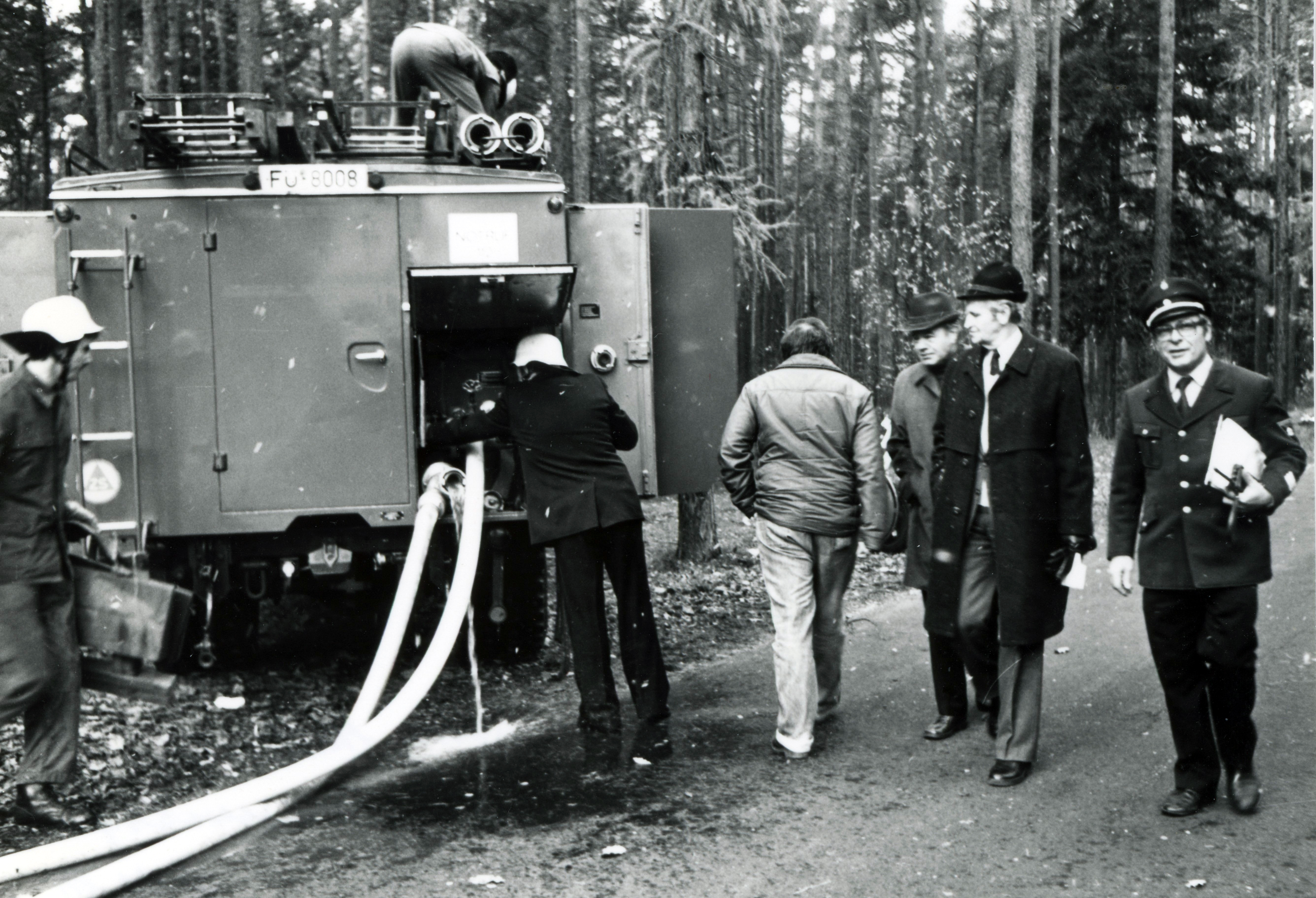 | Beschreibung | Übung der Freiwilligen Feuerwehr im Stadtwald, Nov. 1981 | ||