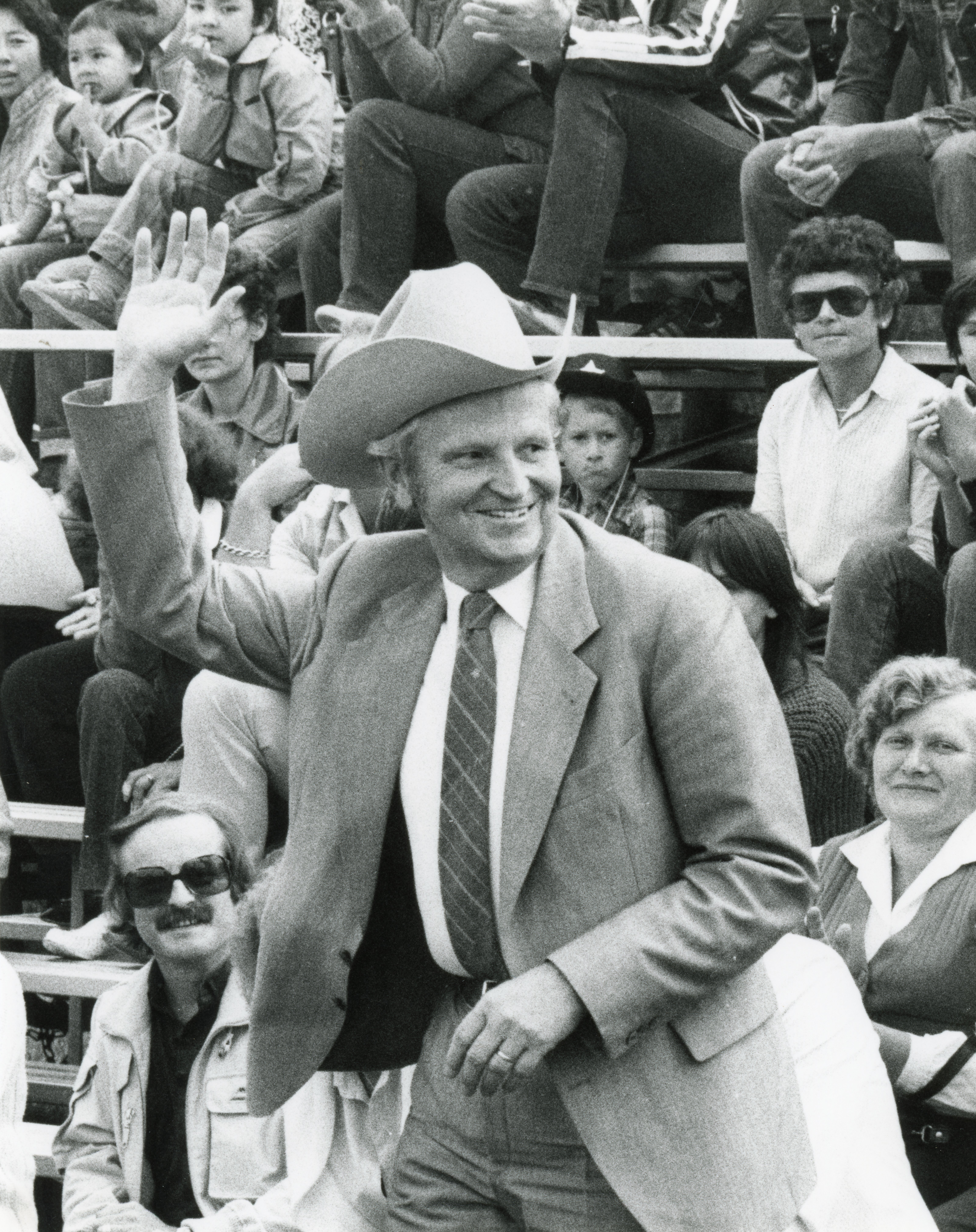 | Dateiinfo (Bild-Unterschrift und Info-Box, automatisch erstellt) | OB Scherzer bei einem Rodeo in Atzenhof, Juni 1982 Urheber: unbekannt<br>Erstellungsdatum: 17. Juni 1982<br>Lizenz: Bildlizenz-Stadtarchiv | ||