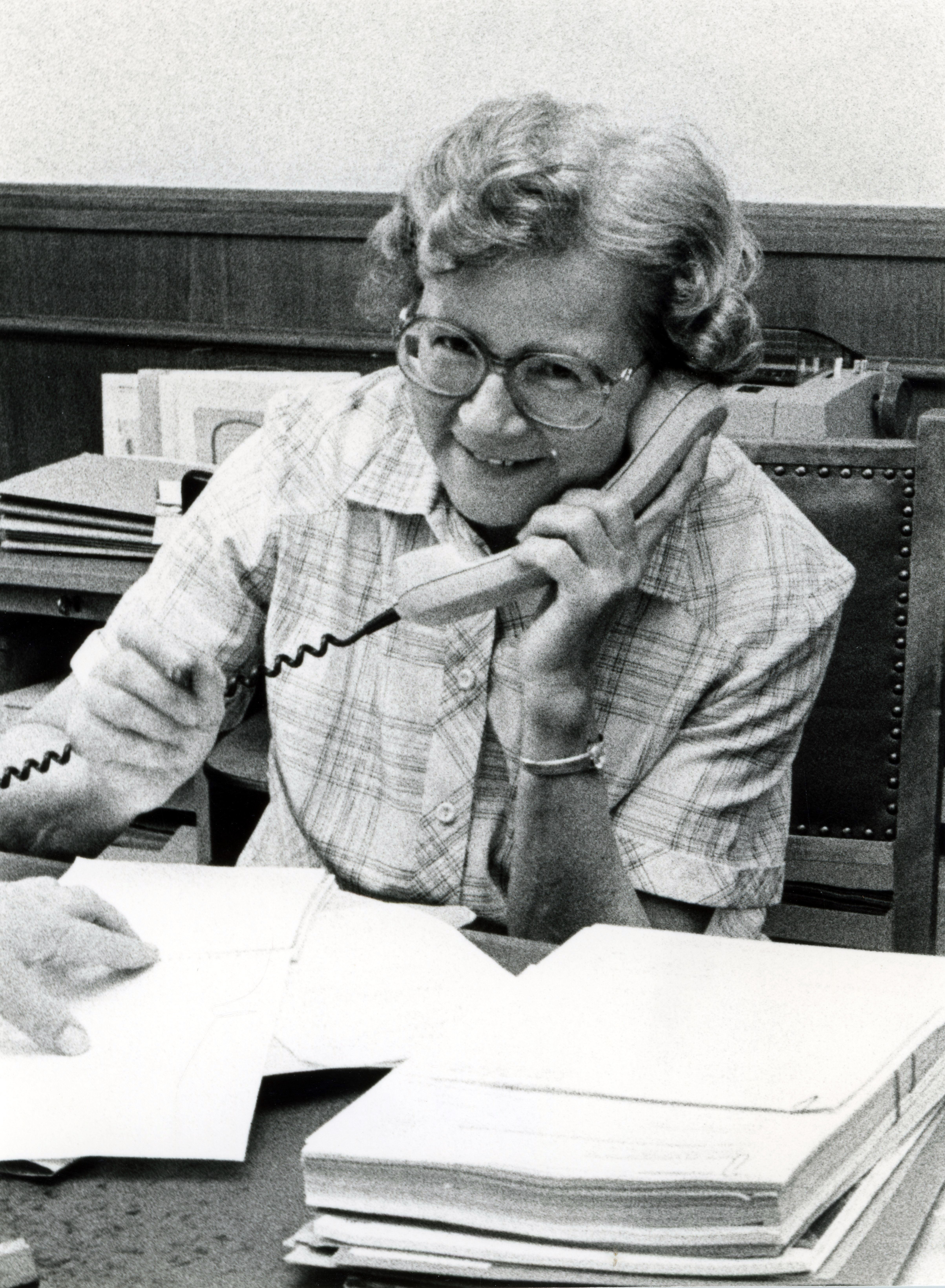 | Beschreibung | Das sog. "Vorzimmerdame" zum Oberbürgermeister, die Sekretärin von OB Kurt Scherzer, 1982 | ||