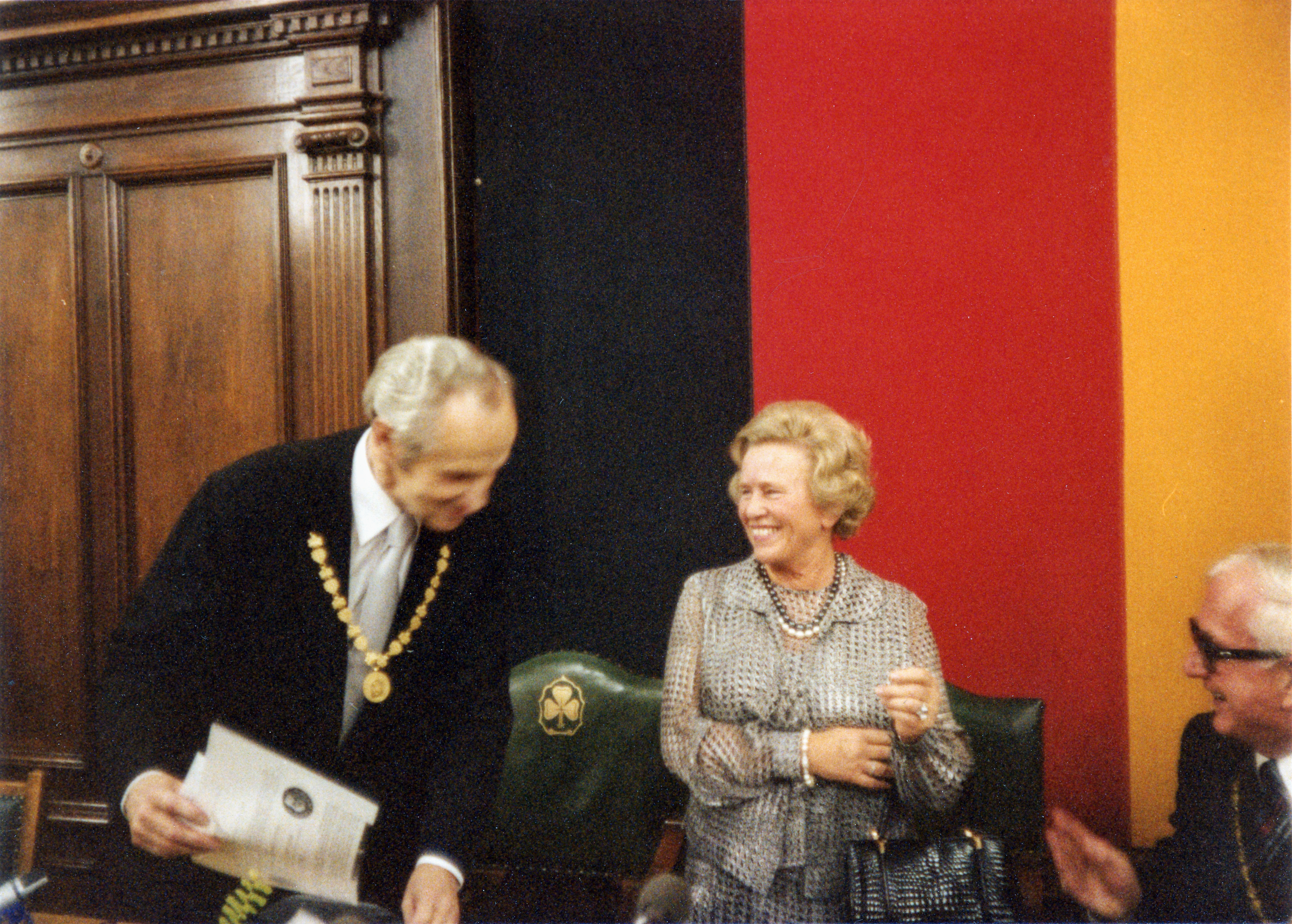 Datei:NL 16-127-6 Verleihung Goldene Bürgermedaille Grete Schickedanz Okt 1978.jpg