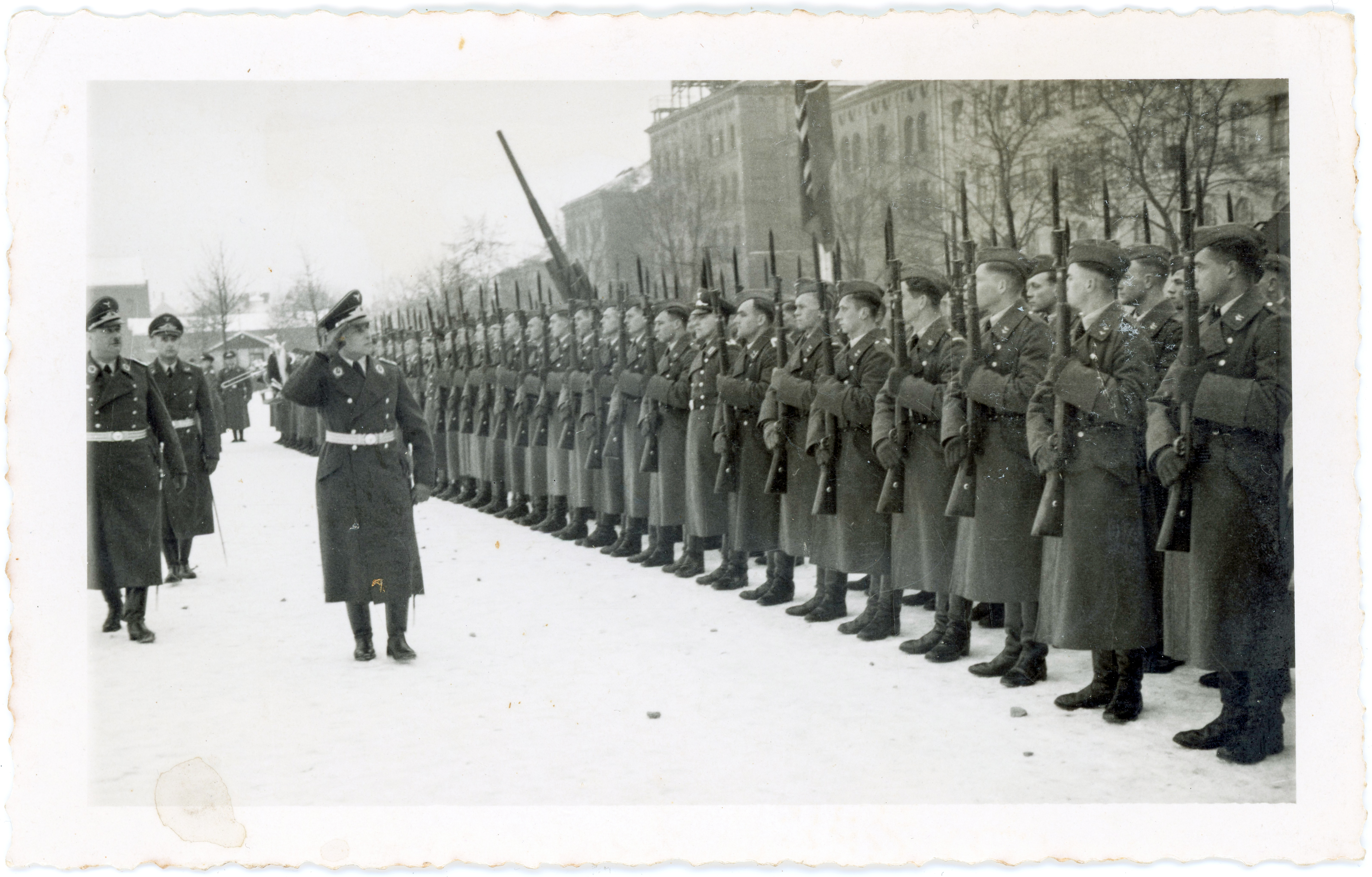 | Beschreibung | Militärparade mit NS-OB Franz Jakob an der Artilleriekaserne, ca. 1938 | ||