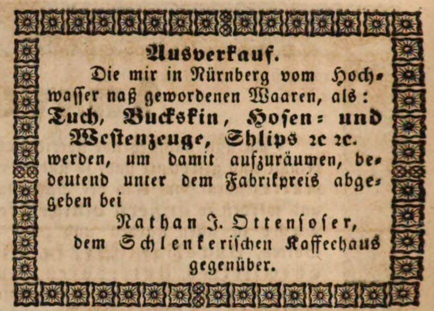 | Beschreibung | Annonce Nathan J. Ottensoser, Fürther Tagblatt 27.1.1849 | ||