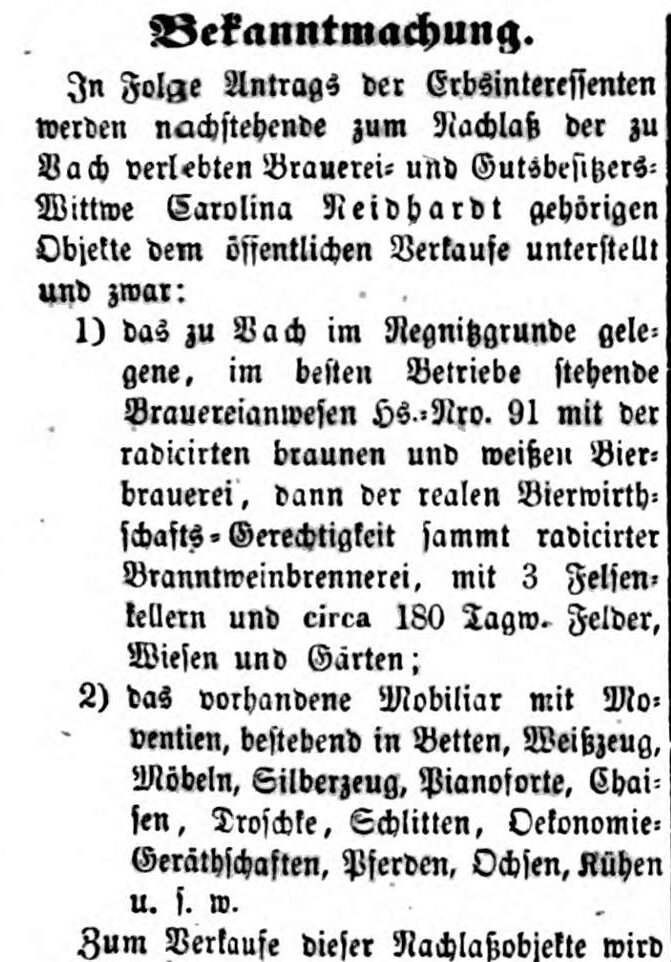 | Dateiinfo (Bild-Unterschrift und Info-Box, automatisch erstellt) | Der Nachlass der Carolina Neidhardt zu Vach soll verkauft werden, Mai 1858 Erstellungsdatum: Mai 1858<br>Lizenz: noc-nc-1.0 | ||