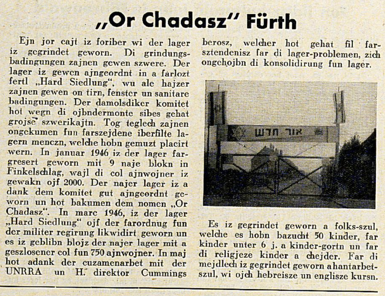 BeschreibungArtikel über "Or Chadasz" in "Undzer Wort" 16. September 1946 von E. Kroo