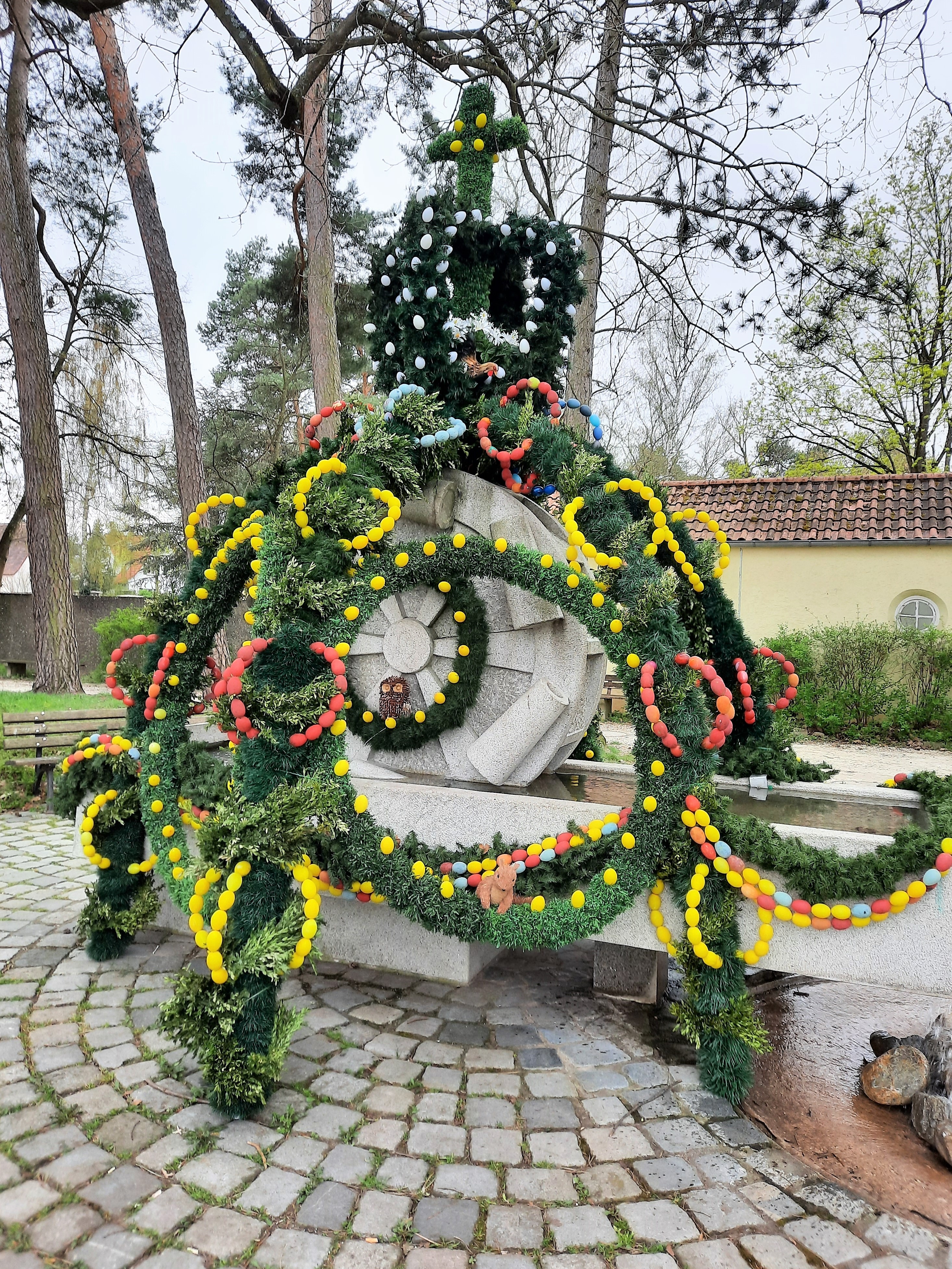 | Beschreibung | Der Stadelner Bürgerbrunnen zur Osterzeit farbenprächtig geschmückt im April 2022 | ||