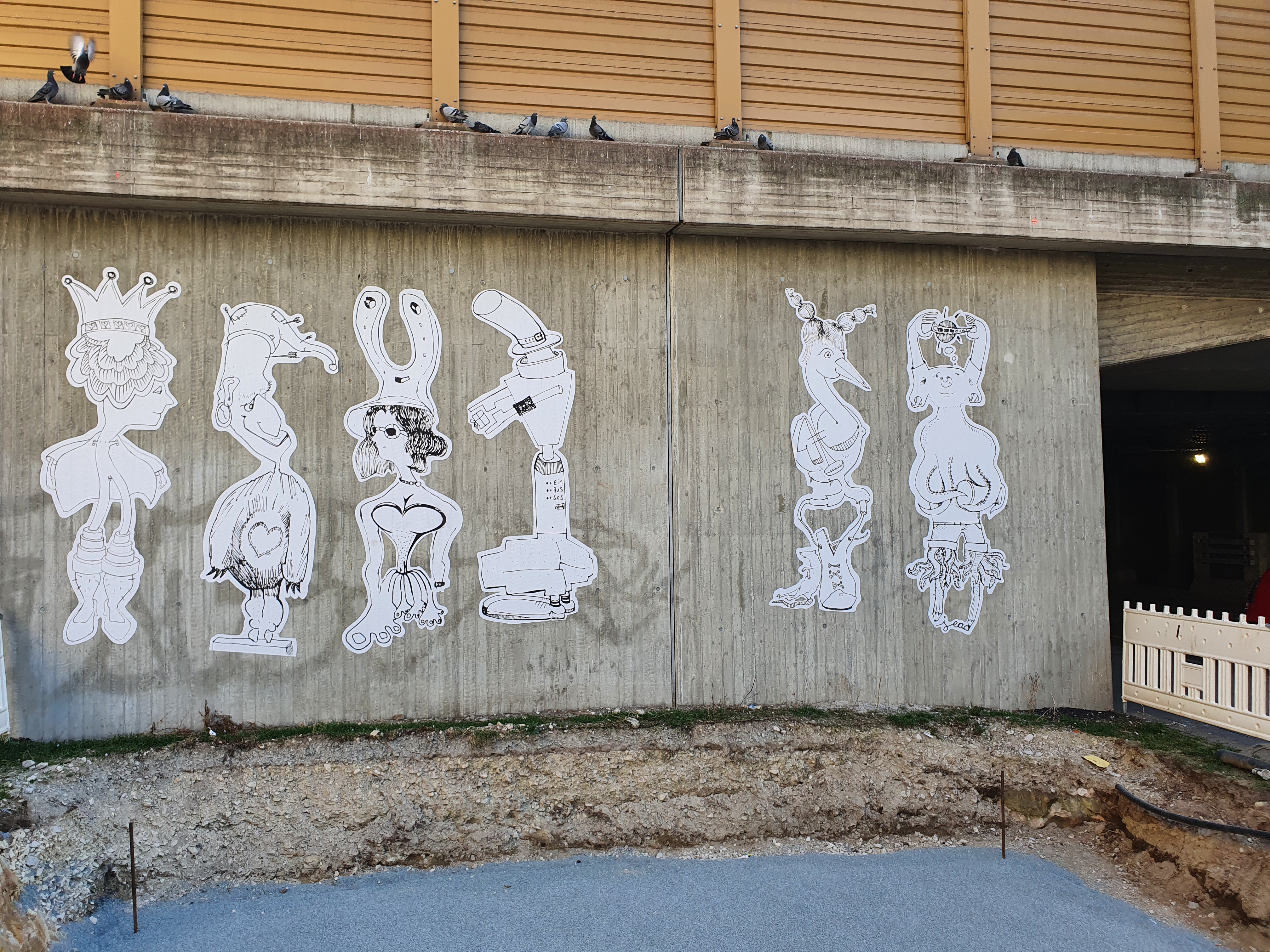 | Beschreibung | Paste-up Streetart von Sascha Banck am Nordportal der Schwabacher Unterführung. Teil des Kunstprojekts "Frei Luft Galerie". Im Vordergrund ist der vorbereitete Untergrund für das Aufstellen einer Trafostation der infra fürth erkennbar. März 2021 | ||