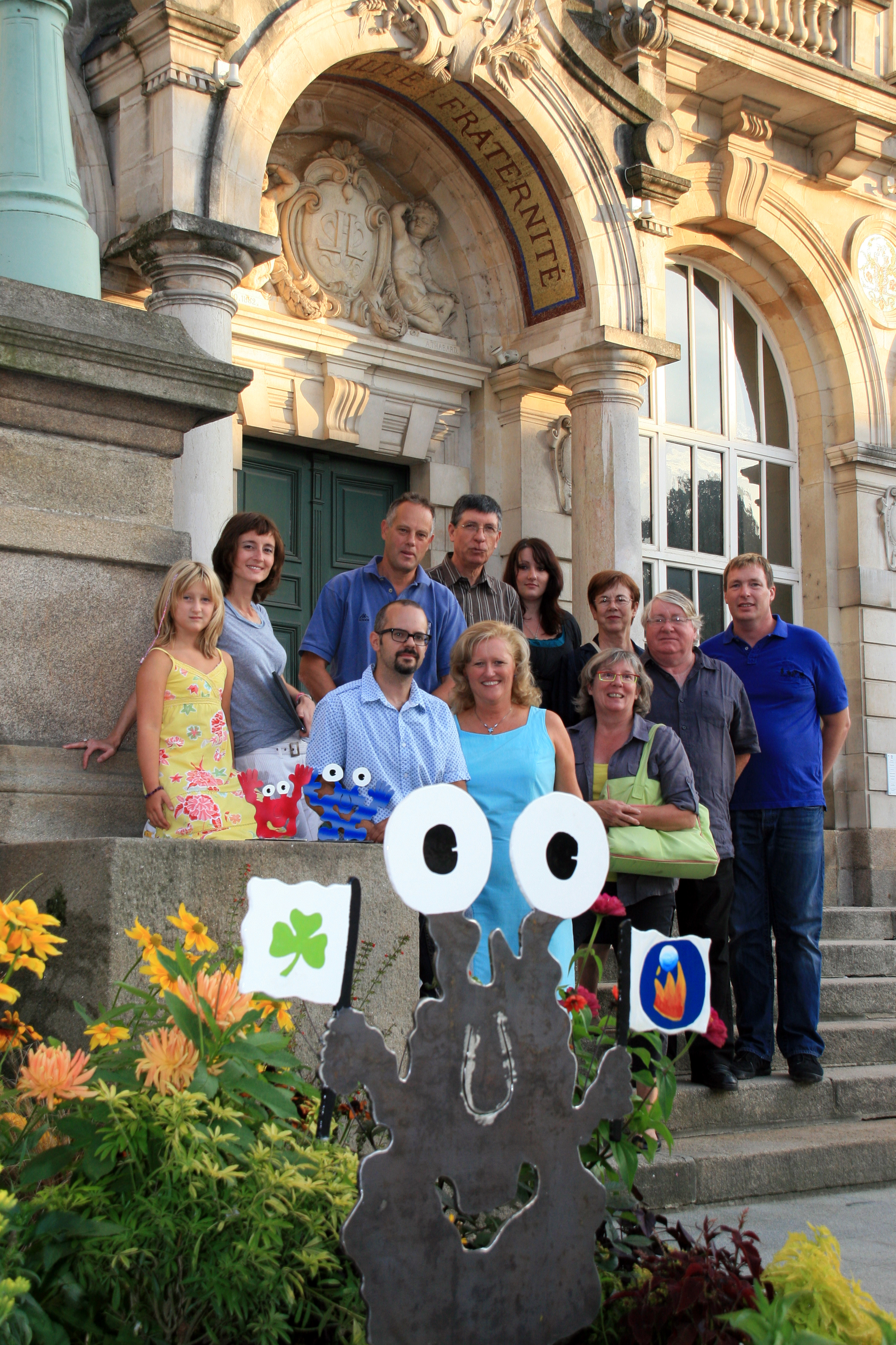 | Beschreibung | Aufstellung des Monster-Kunstwerkes mit den Fahnen der Partnerstädte Limoges und Fürth vor dem Rathaus im Limoges in Frankreich - mit Teilen des Stadtrates und Mitarbeiter der Stadt Limoges und Fürth, Sept. 2010 | ||