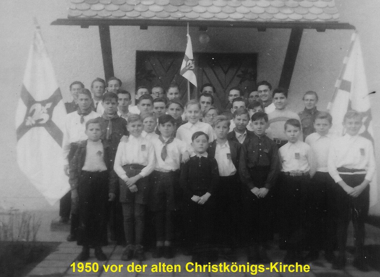 Pfadfinder St. Georg Stamm II - 1950 vor der alten Christkönig-Kirche