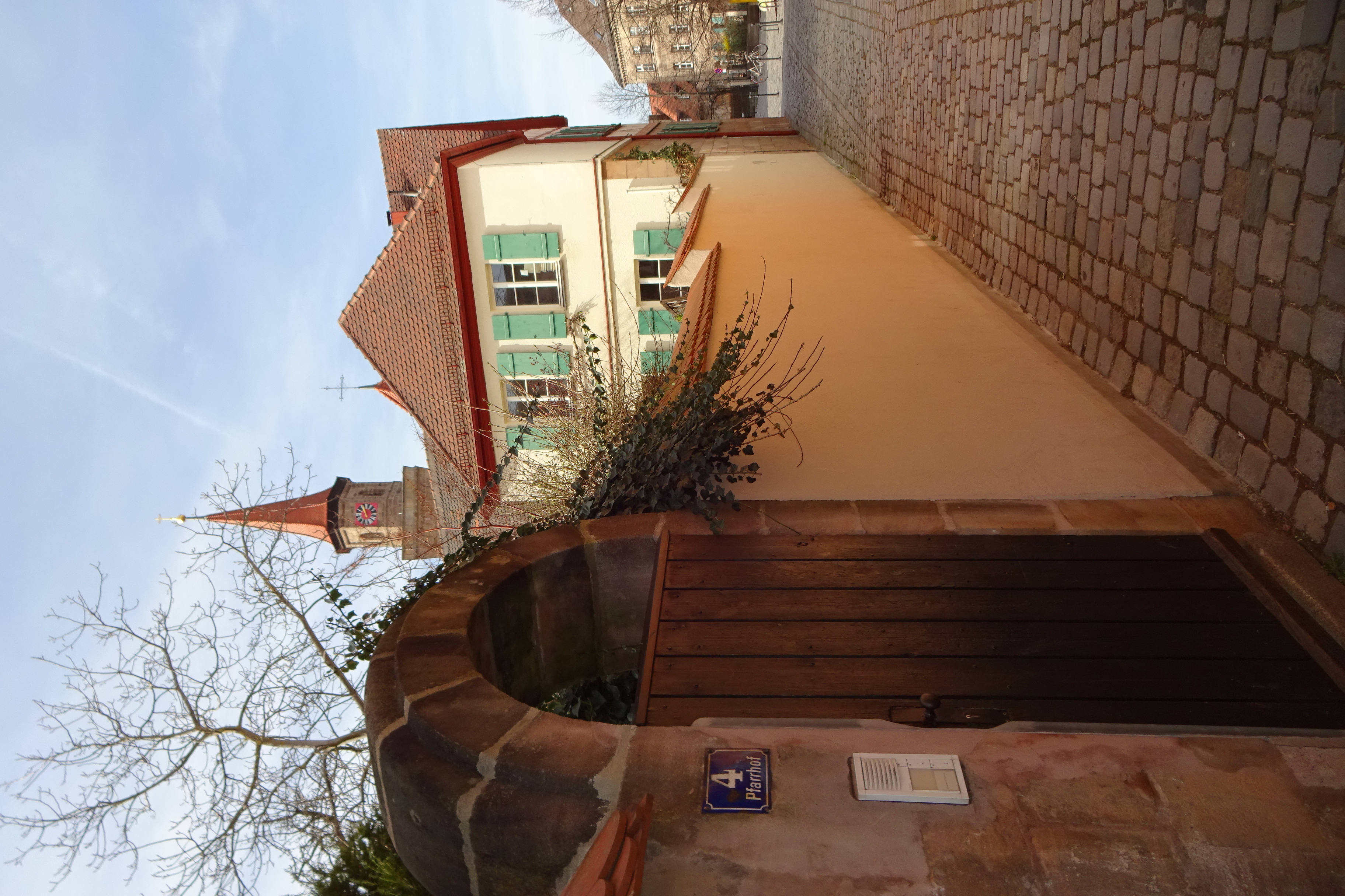 Eingang Pfarrhof 4 mit Pfarrgasse im März 2020 Urheber: Norbert Pietsch<br>Erstellungsdatum: 15. April 2020<br>Lizenz: cc-by-sa-3.0