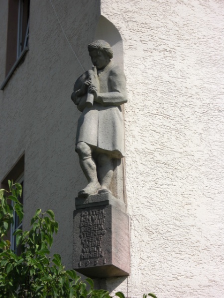 | aktuell | 00:33, 30. Jul. 2009 | 480 × 640 (176 KB) | Doc Bendit (Diskussion | Beiträge) | Wandplastik ''"Dudelsackpfeifer"'', Michael Schoberth, Material ?, 1951, Inschrift: ''"So steh ich wieder auf diesem Stein und pfeife in die Welt hinein" 1951'' Foto: Doc Bendit, Juli 2009 Kategorie:Kunst [[Kategorie:Plätz |