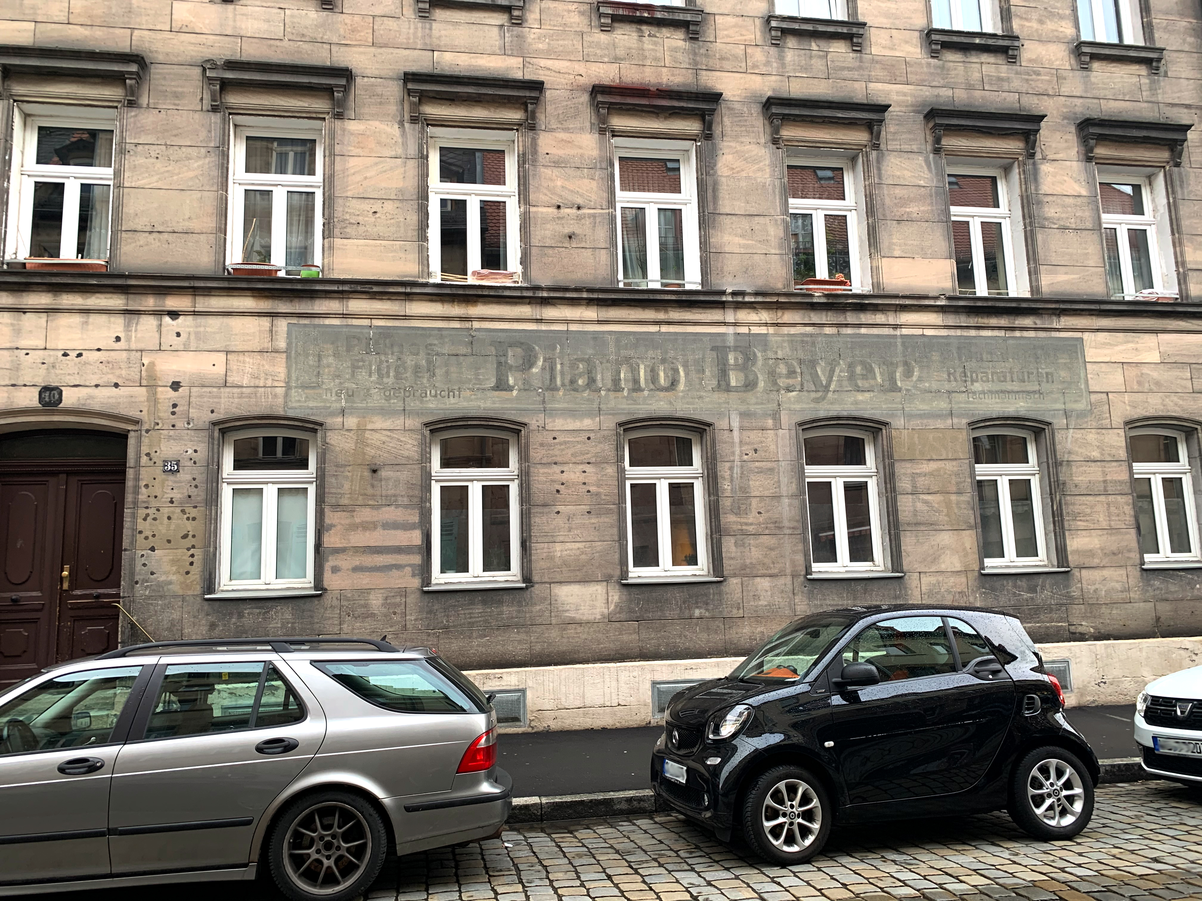 | Beschreibung | Werbebeschriftung des ehem. Unternehmens Piano Beyer an der Blumenstraße 35, März 2021 | ||
