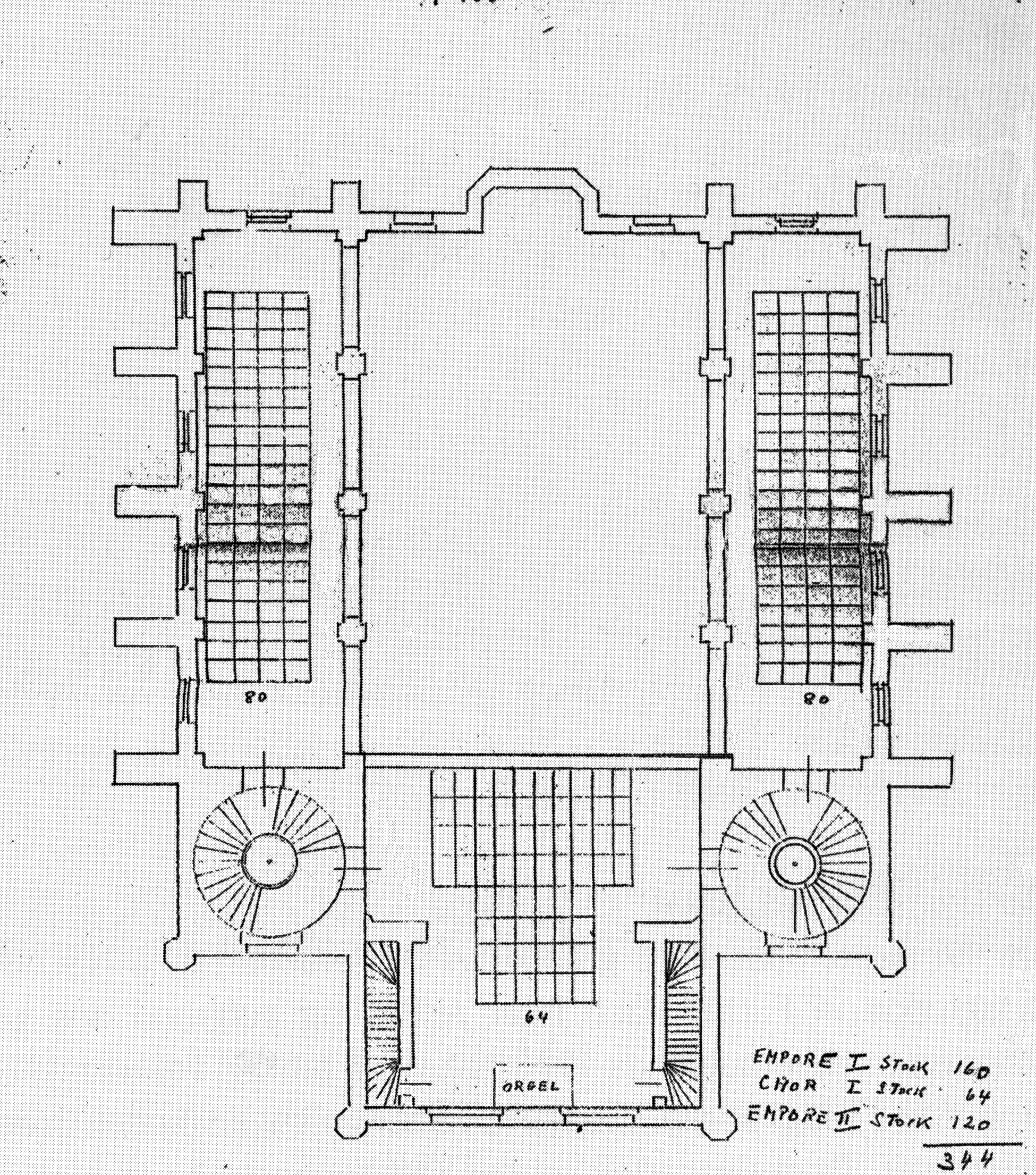 | Beschreibung | Plan mit Sitzplatzverteilung Altschul, Obergeschoss | ||