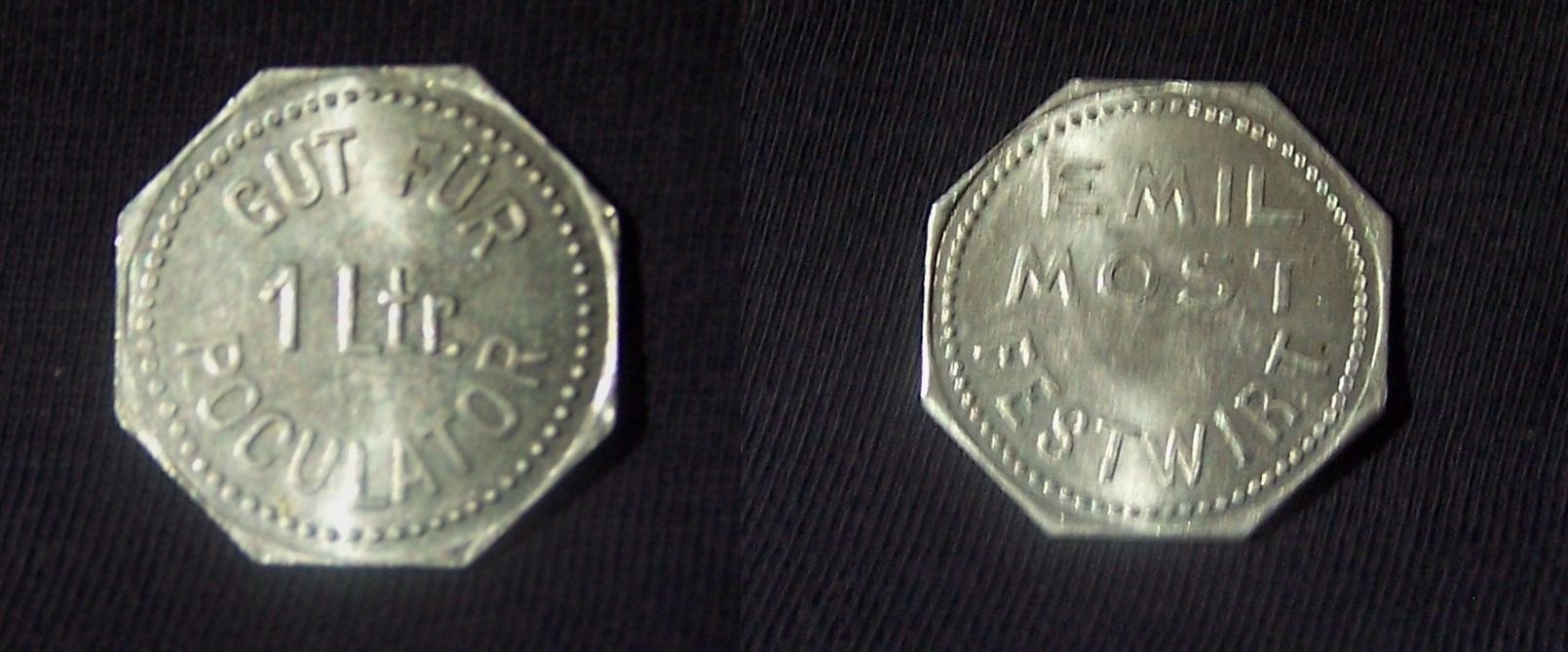 Poculator Biermarke für 1 Ltr. Doppelbock im Geismannsaal Festwirt Emil Most 70er_Jahre