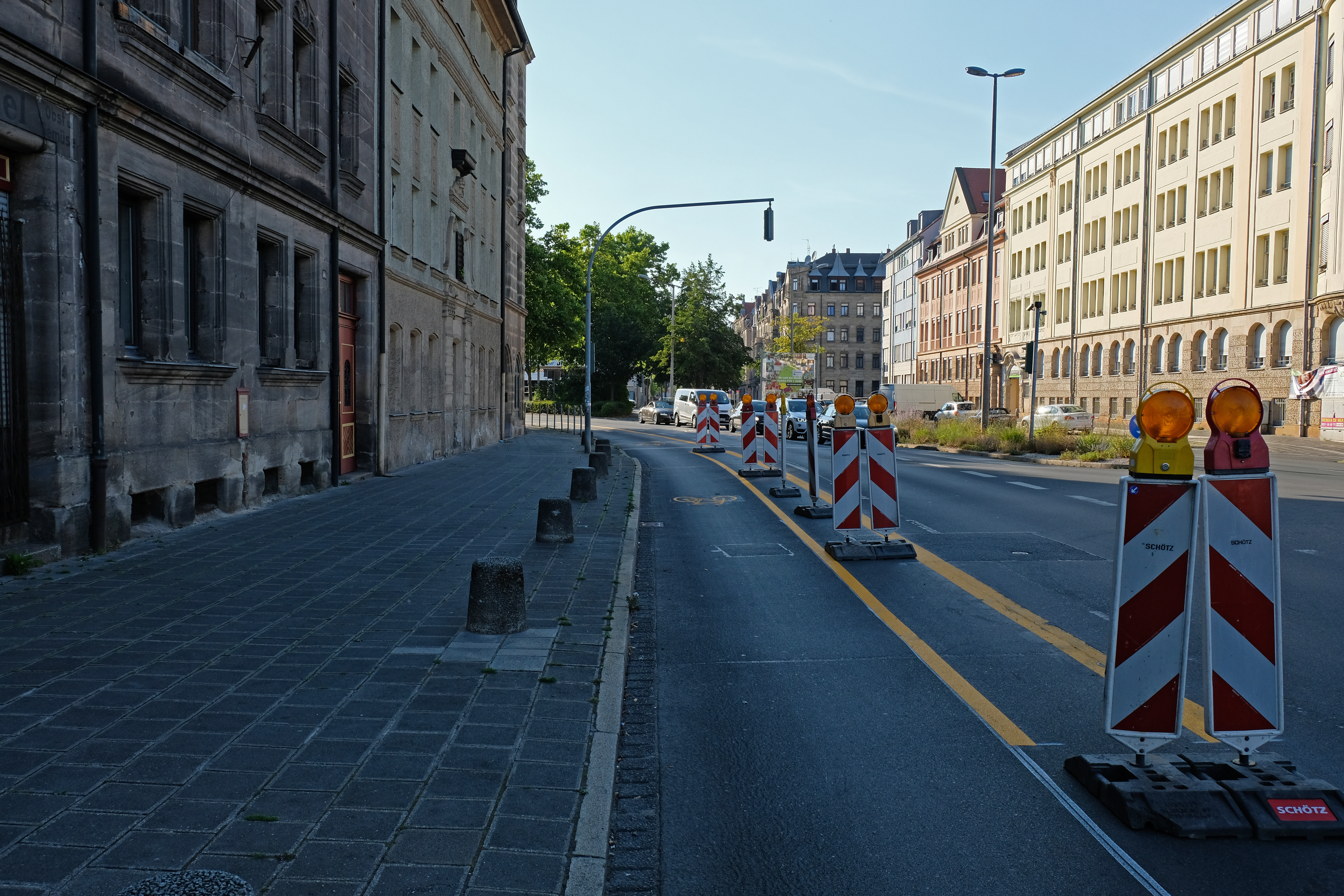 | Beschreibung | Fürths erster Pop-up-Radweg entlang der Nürnberger Straße Richtung Stadt auswärts, Aug. 2020 | ||