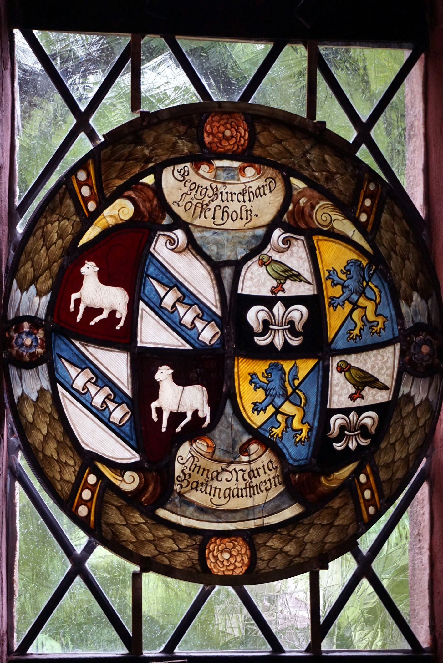 | Dateiinfo (Bild-Unterschrift und Info-Box, automatisch erstellt) | Wappenscheibe Löffelholz/Baumgärtner Urheber: Jörg Sandreuther<br>Lizenz: cc-by-sa-3.0 | ||