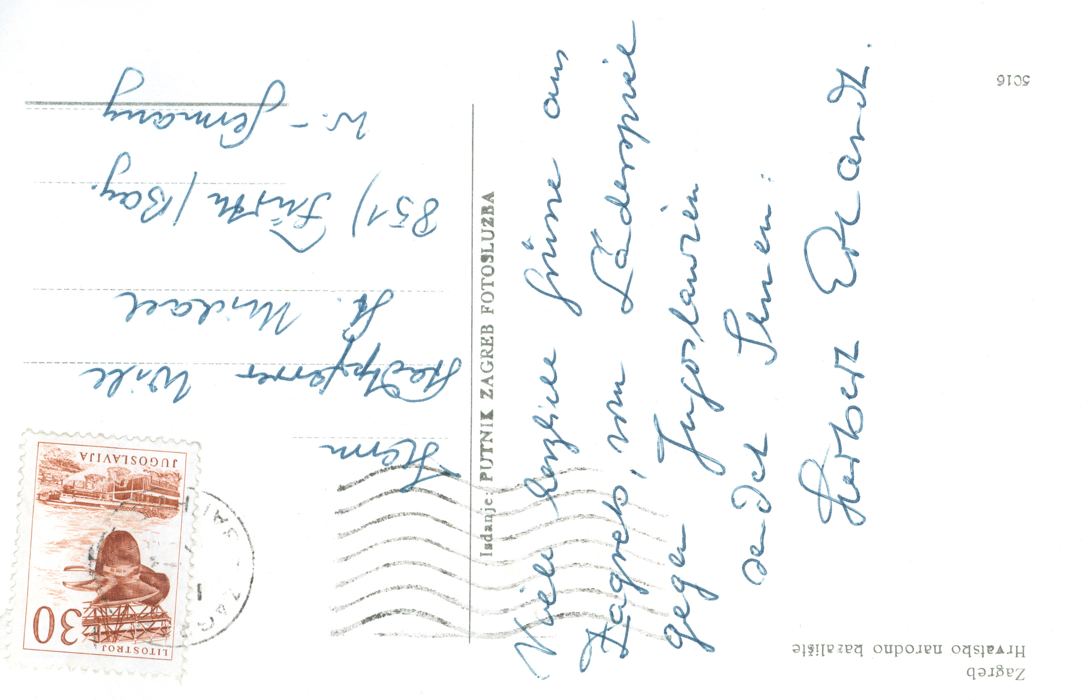 | Beschreibung | Postkarte von Herbert Erhard an Pfarrer Karl Will vom Länderspiel gegen Jugoslawien | ||