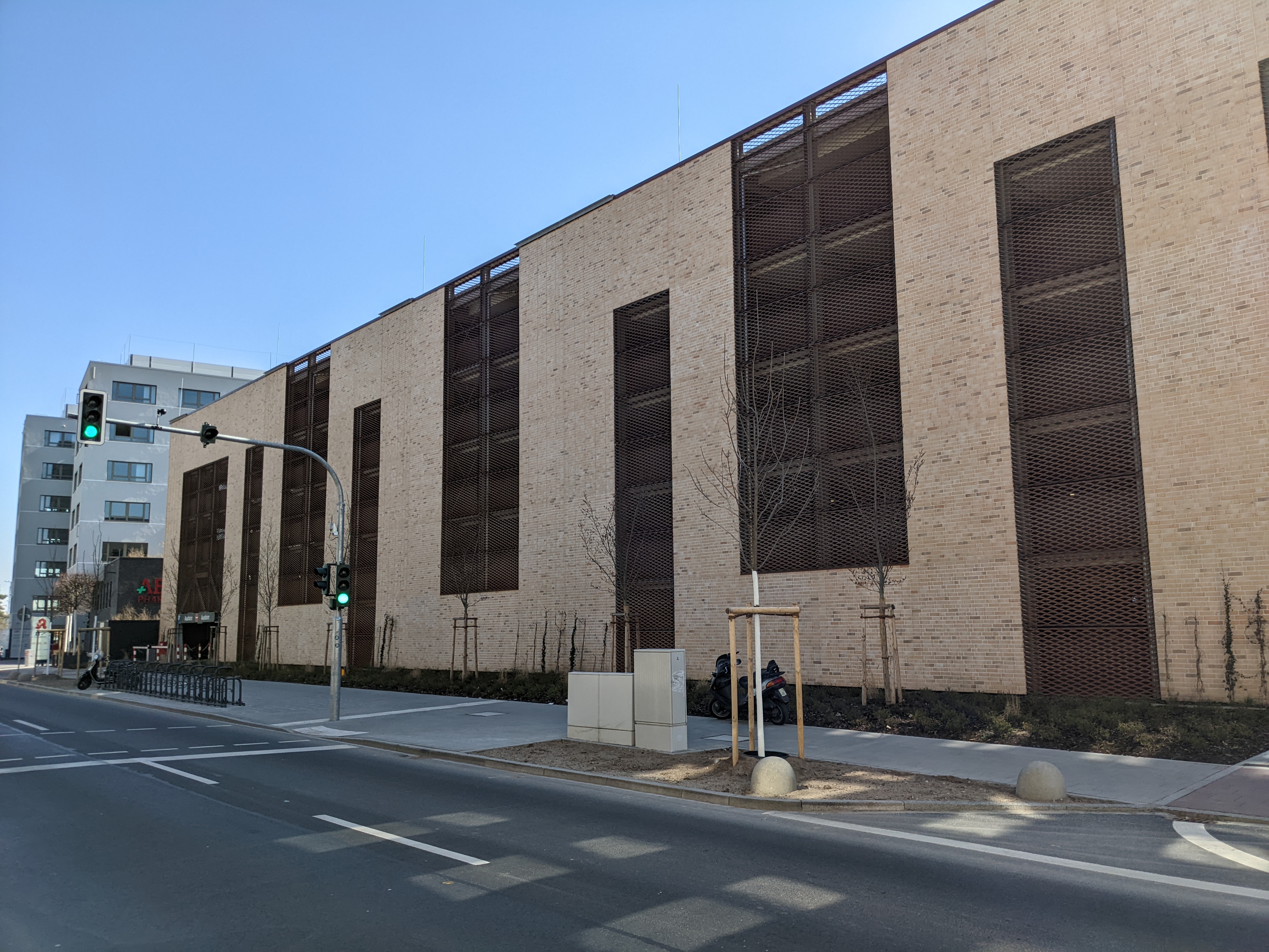 Parkhaus Jakobinenstraße bzw. Quartiersgarage Gebhardtstraße von Westen gesehen, März 2022 Urheber: Web Trefoil<br>Erstellungsdatum: 23. März 2022<br>Lizenz: cc-by-sa-3.0