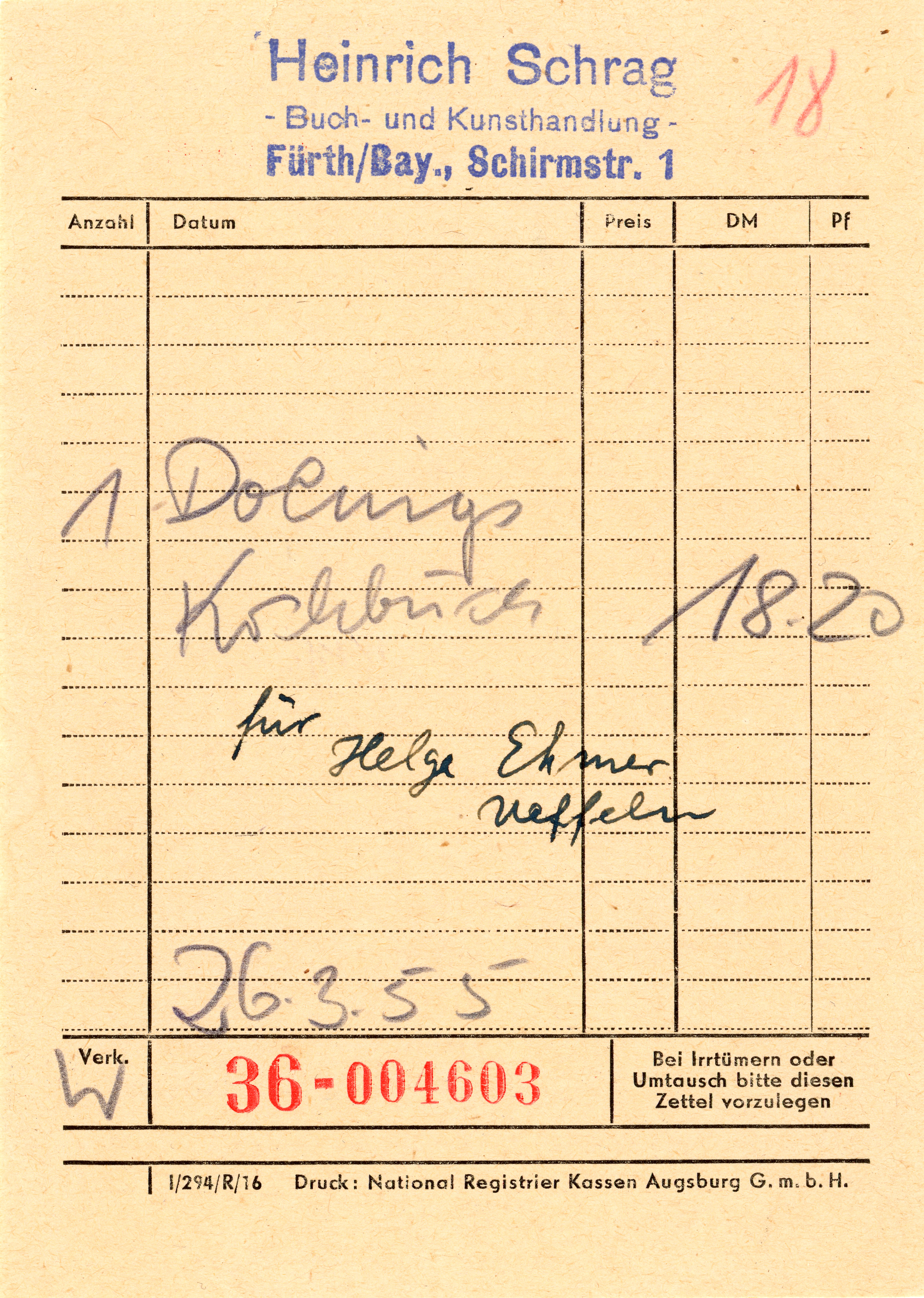 | Beschreibung | Rechnung der Buchhandlung Heinrich Schrag, 1955 | ||