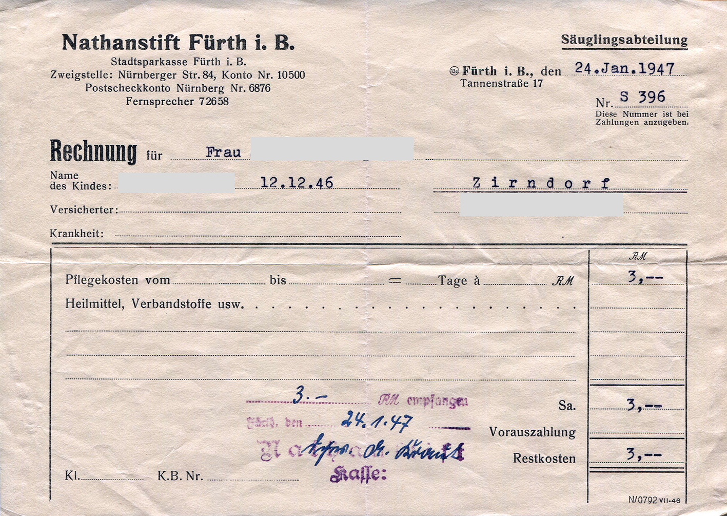 | Beschreibung | Rechnung aus dem Nathanstift, 1947 | ||