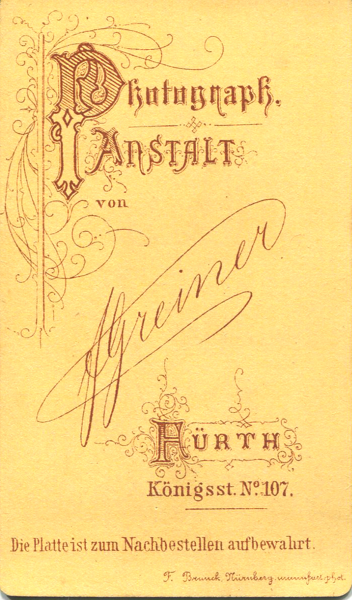 Porträt einer Frau in Fürth, vor 1890 Urheber: J. Greiner<br>Erstellungsdatum: 1890<br>Lizenz: cc-by-sa-3.0
