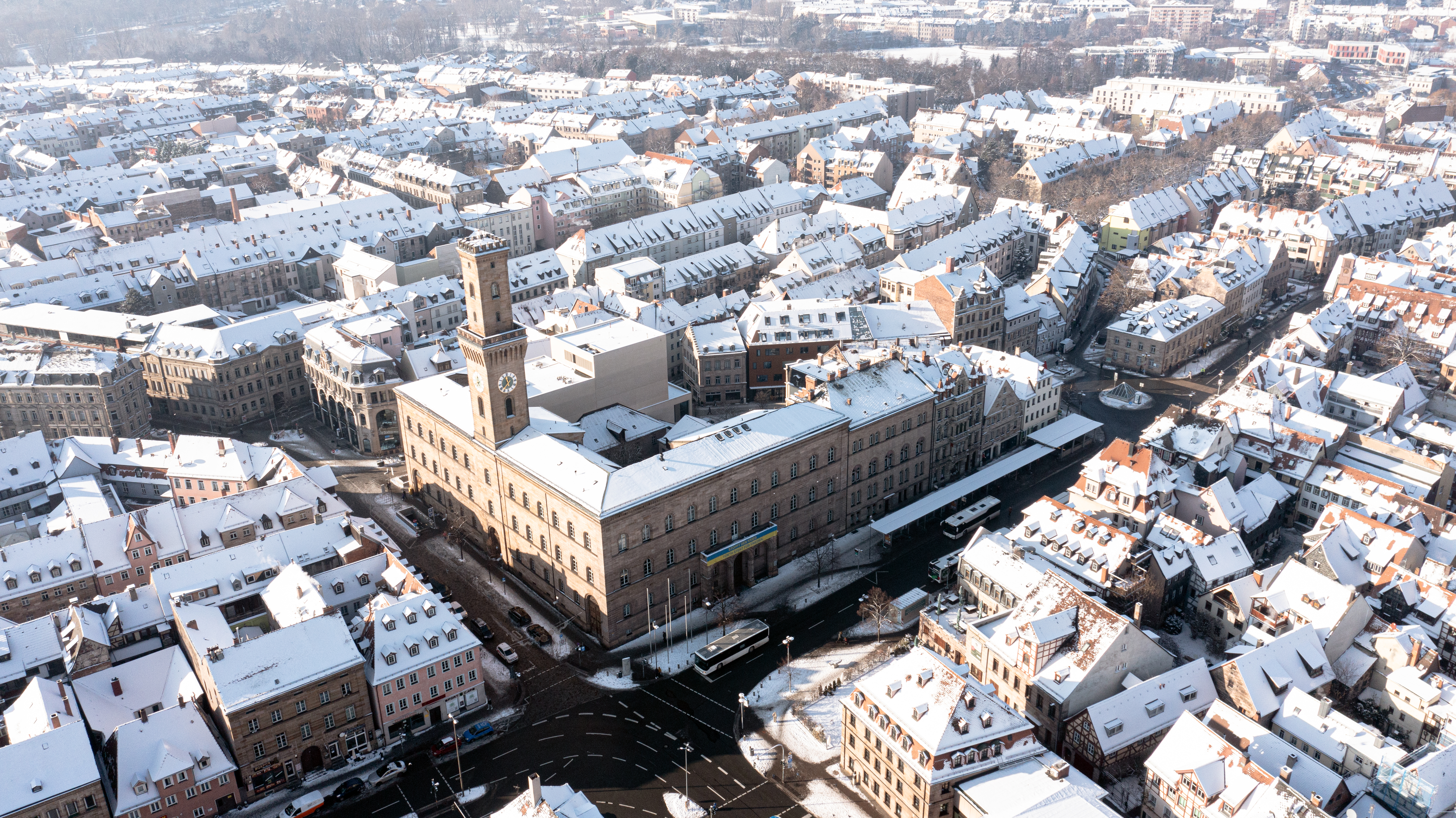| Beschreibung | Blick über die Altstadt - in der Mitte das Fürther Rathaus, Dez. 2022 | ||