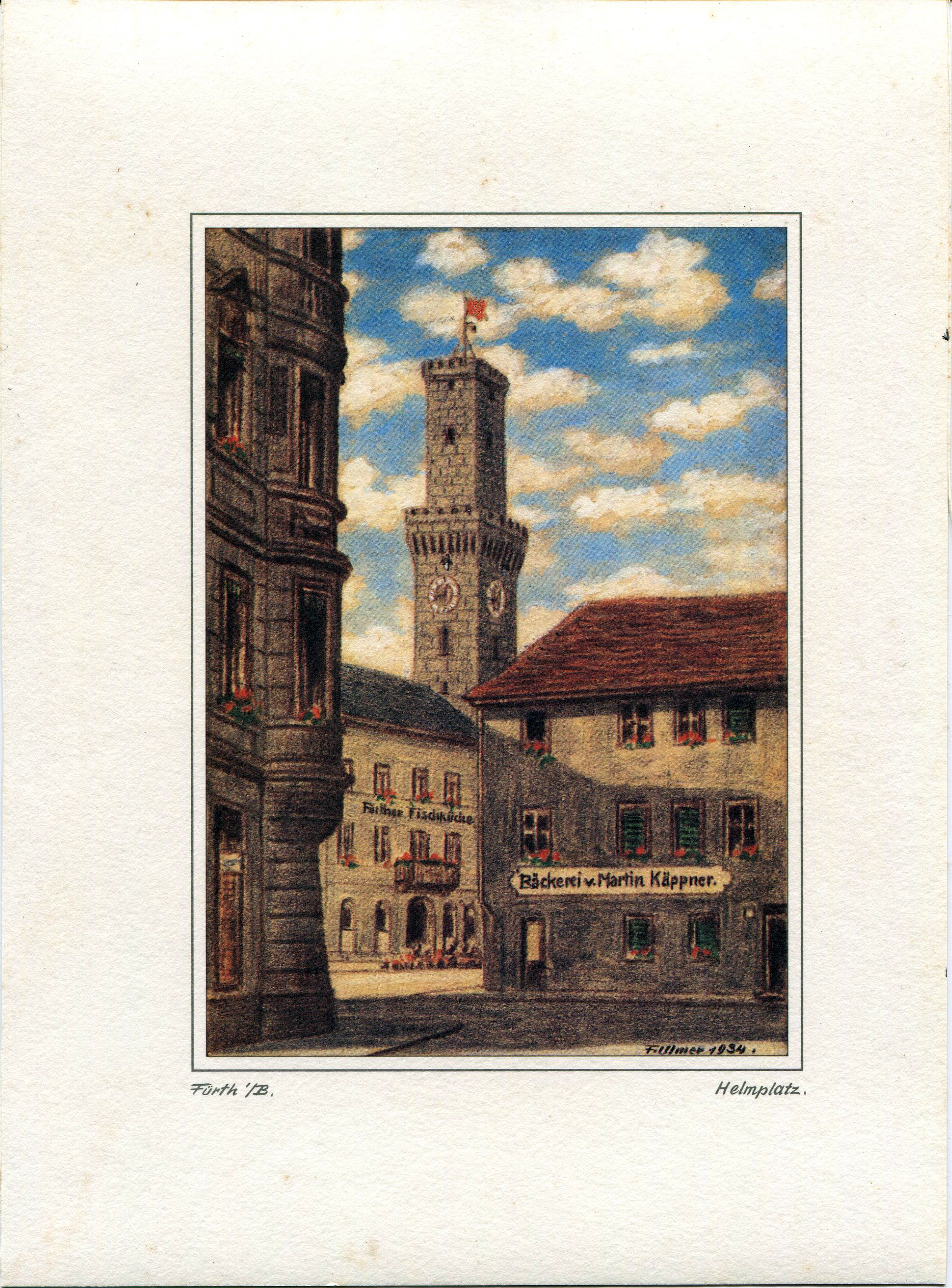 | Beschreibung | Zeichnung von Franz Ulmer, Titel: Helmplatz | ||