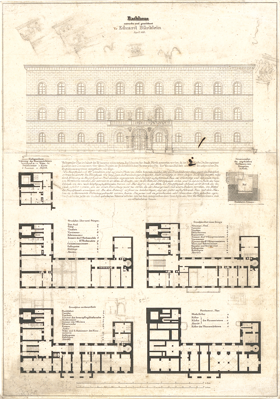 | Beschreibung | Bauplan Rathaus von Eduard Bürklein, April 1837 | ||