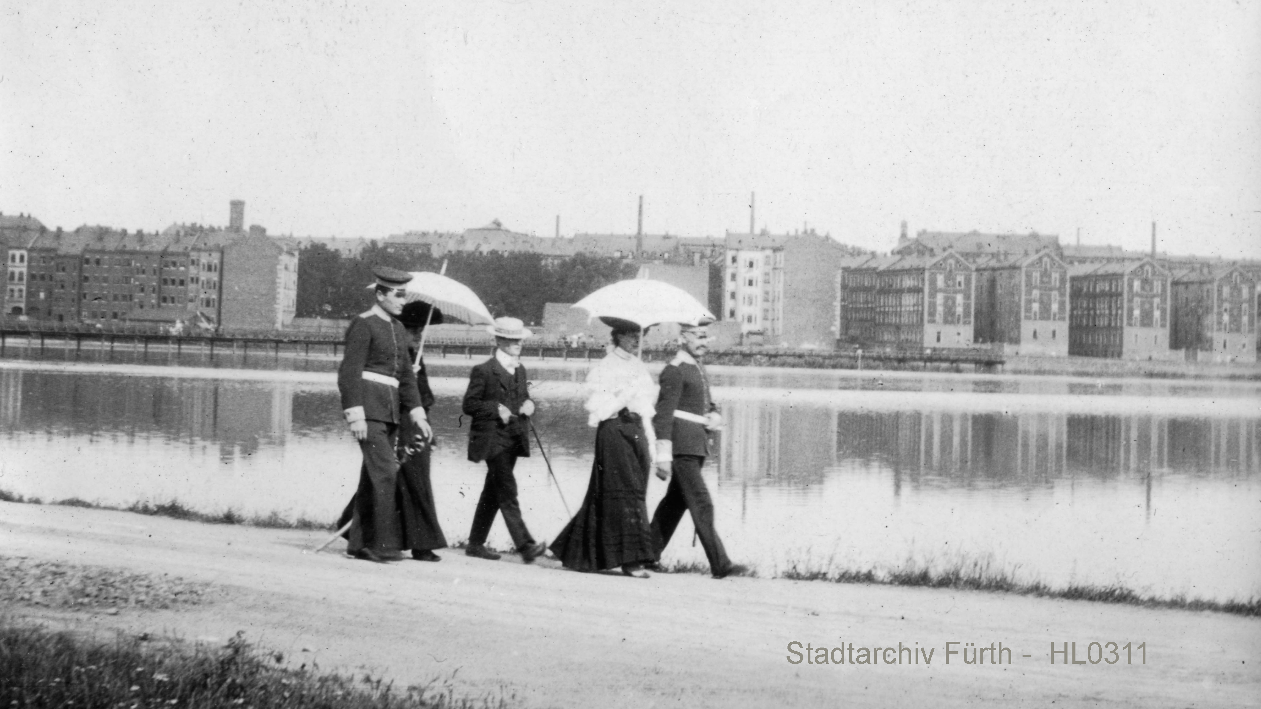 | Dateiinfo (Bild-Unterschrift und Info-Box, automatisch erstellt) | Spaziergang am Rednitzhochwasser, im Hintergrund der Königswartersteg und die Kißkalthäuser, um 1910 Urheber: Johann Georg Heinrich Lotter<br>Erstellungsdatum: 1910<br>Lizenz: Bildlizenz-Stadtarchiv | ||