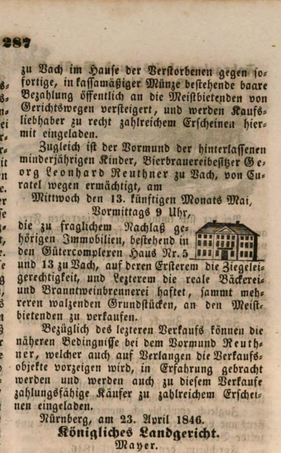 | Quellangaben | Fürther Tagblatt, 28.04.1846 - online-Digitalisat der Bayerischen Staatsbibliothek | ||