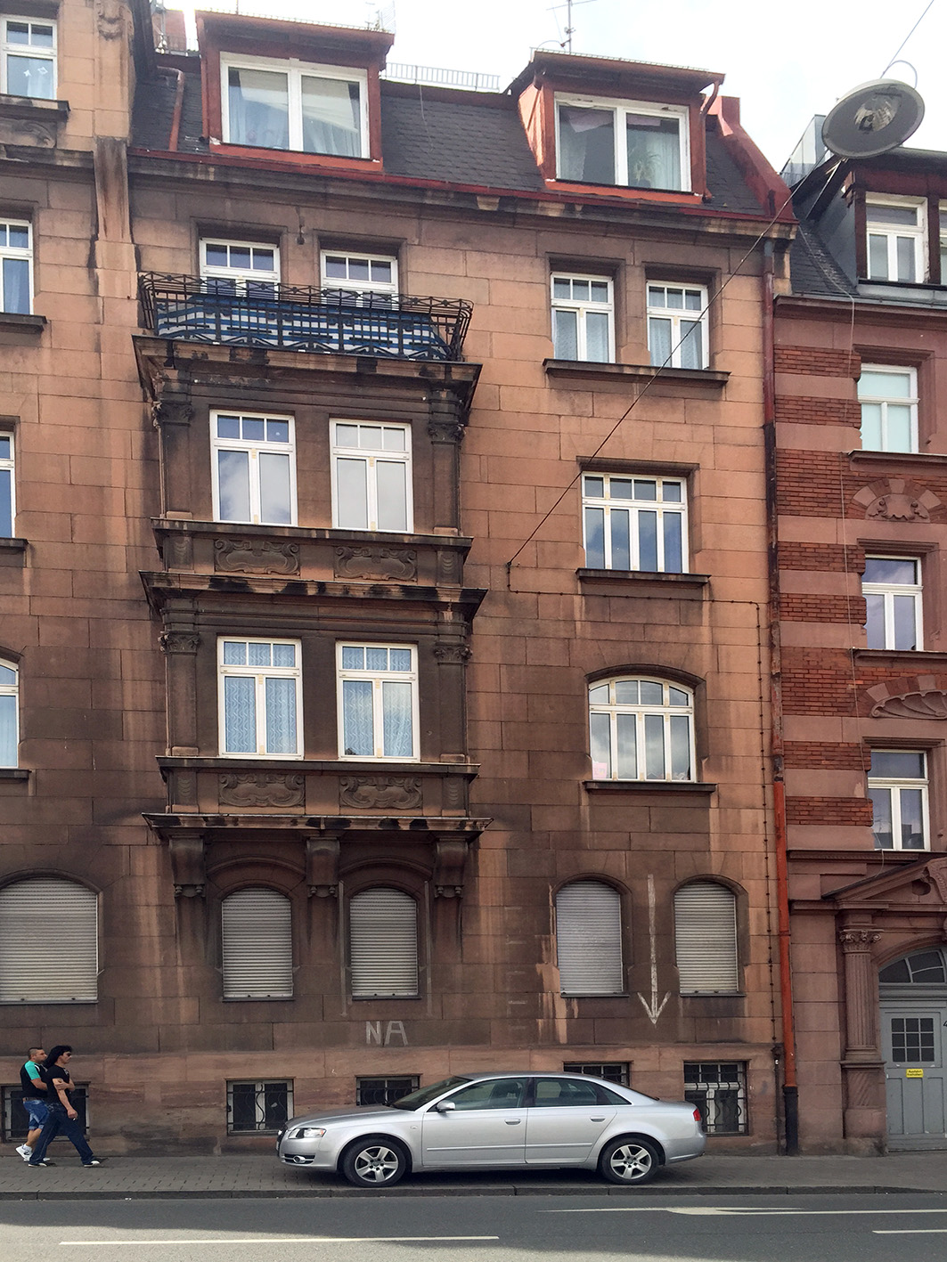 | Beschreibung | Luftschutzzeichen an der Fassade Ritterstraße 6, NA = Notausstieg | ||