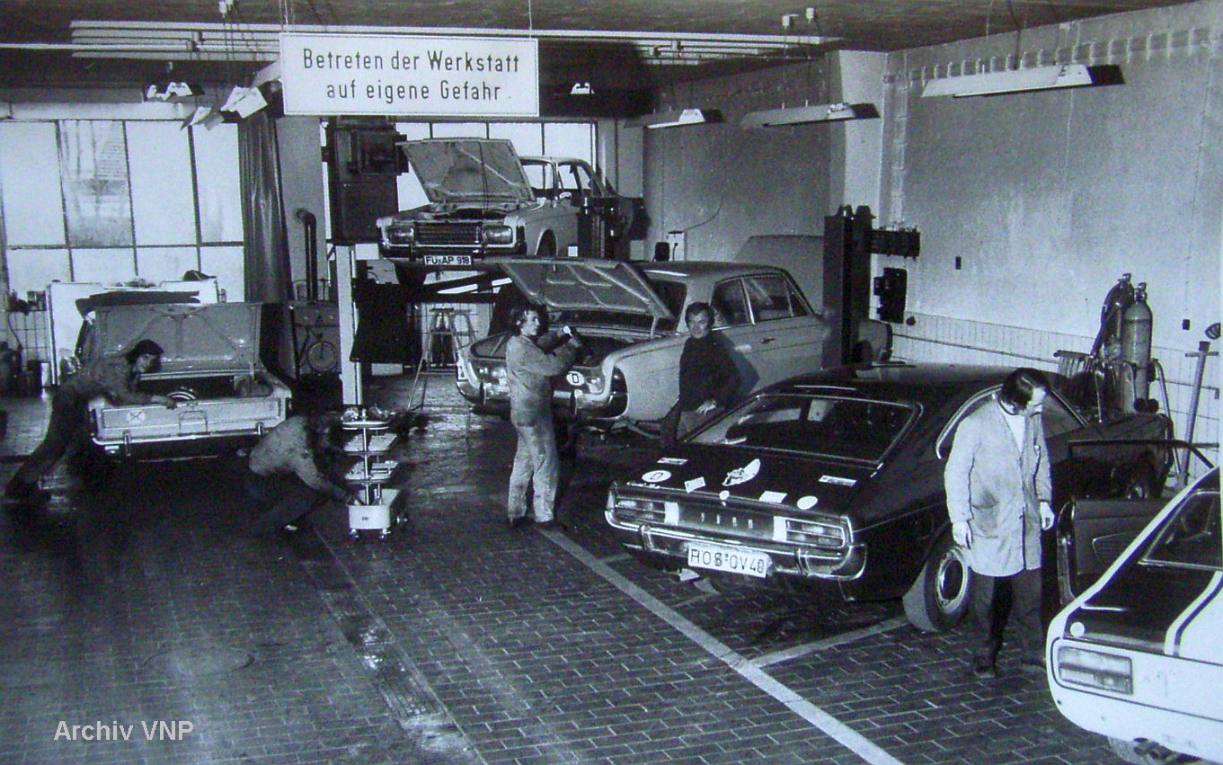 BeschreibungBlick in die Werkstatt von Autohaus Röder (1974)
