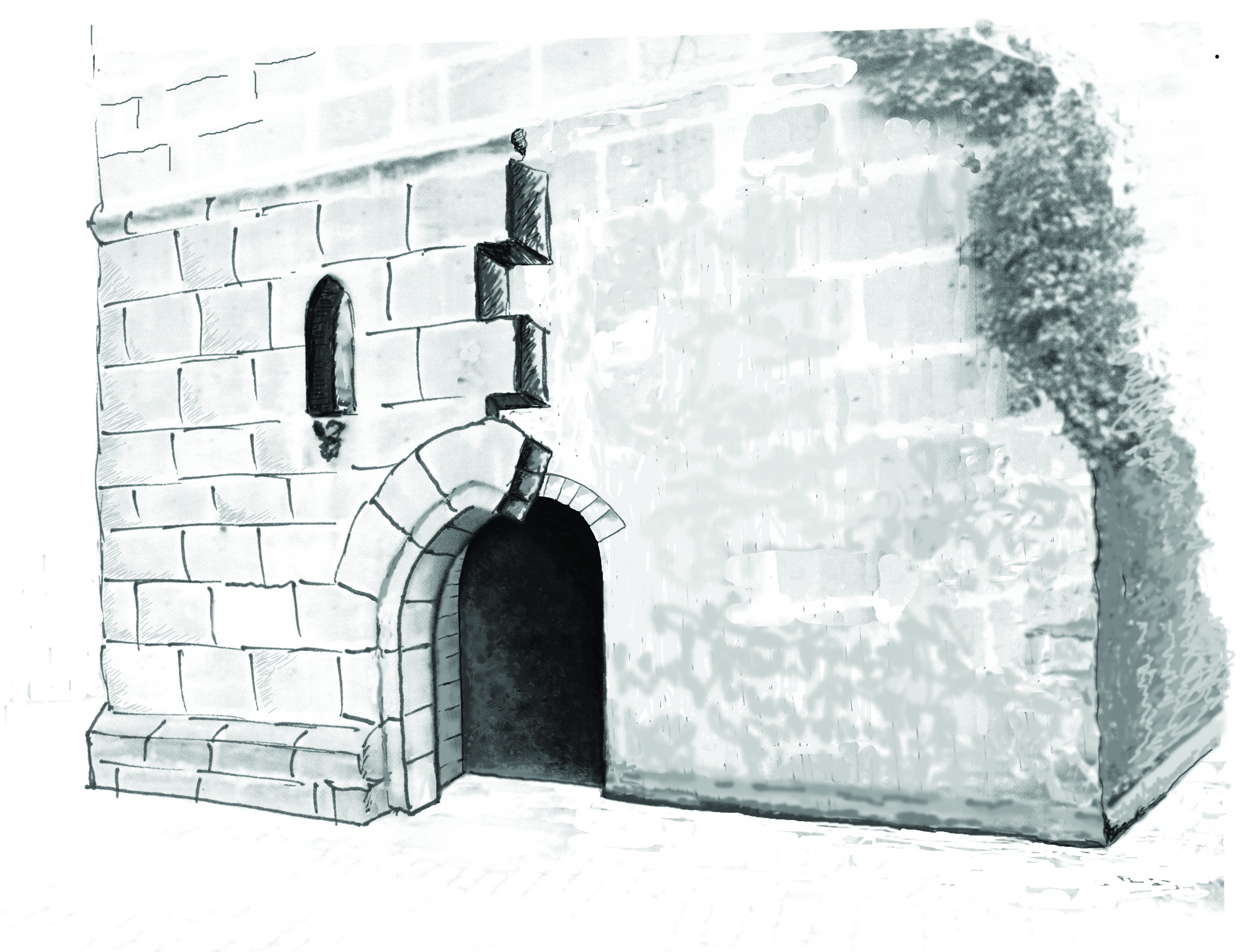 BeschreibungRekonstruktionszeichnung der gotischen Ummantelung des romanischen Turmes