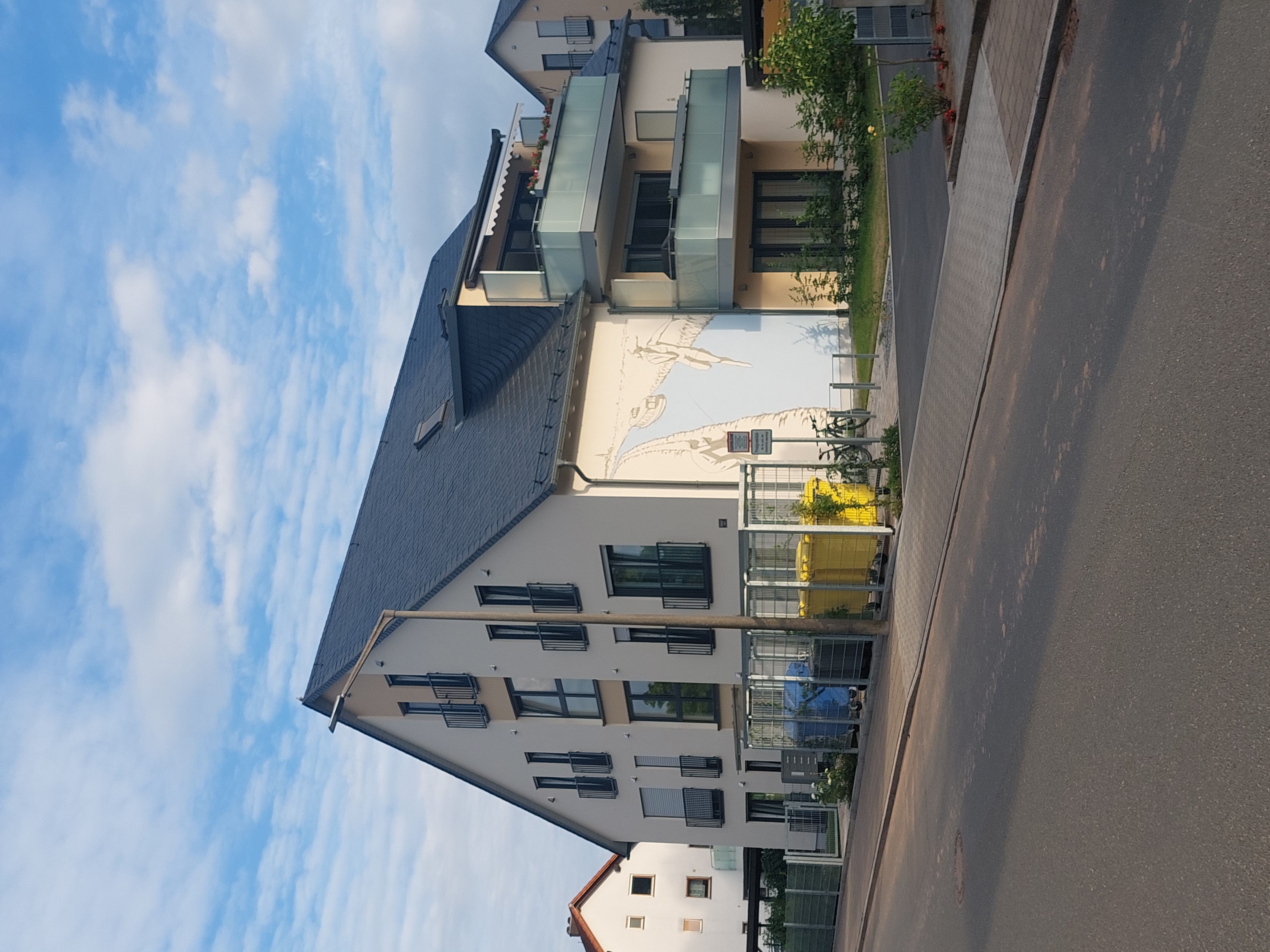 | Beschreibung | Neubau in der Ronhofer Hauptstraße mit Kunst von André Jeschar, Juni 2023 | ||