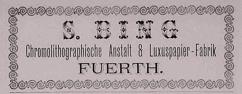 | Beschreibung | Werbeanzeige Chromolithographische Anstalt & Luxuspapier-Fabrik S. Bing, 1886 | ||