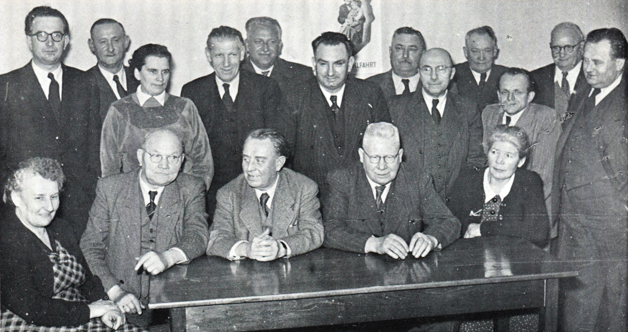 BeschreibungSPD Stadtratsfraktion 1948 - 1952. v.l.n.r.: (stehend) Heinrich Stranka, Otto Wolf, Liselotte Bühler, Hans Segitz, Hans Fehn, Wenzel Dirscherl, Siegmund Schmaus, Leo Rosenthal, Ambros Dietz, Hans Schmidt, Hans Hösch, Fritz Engelhardt; (sitzend): Friedl Kirschbaum, Hans Rupprecht, Erich Herrmann, Georg Lederer, Berta Klier