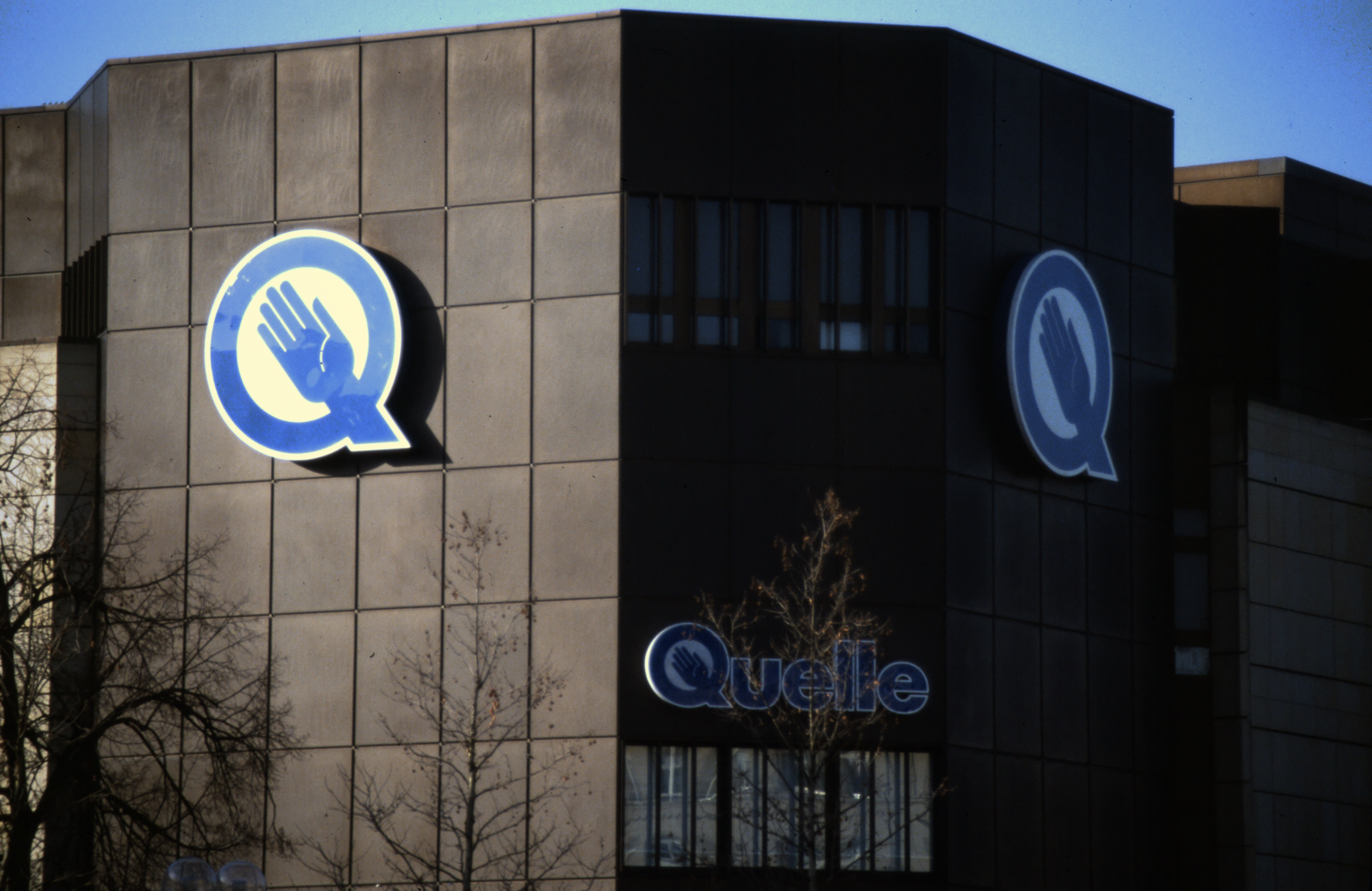 | Dateiinfo (Bild-Unterschrift und Info-Box, automatisch erstellt) | Quelle-Logos am Kaufhaus an der Fürther Freiheit Urheber: Jürgen Körnlein<br>Erstellungsdatum: 1995<br>Lizenz: cc-by-sa-3.0 | ||