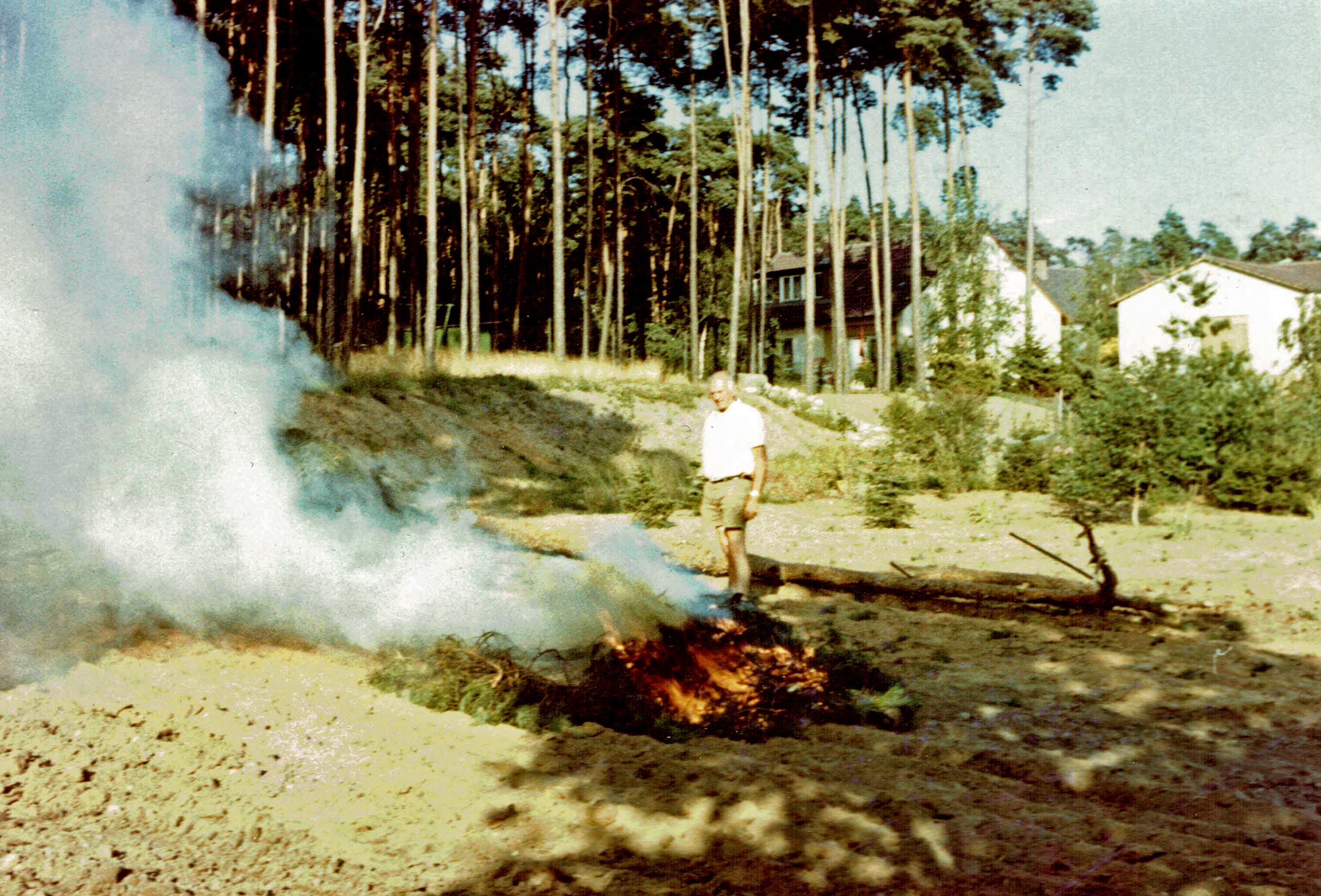 | Beschreibung | Holzverbrennung auf der alten Sandgrube an der Seestraße in Mannhof, Sommer 1973 | ||