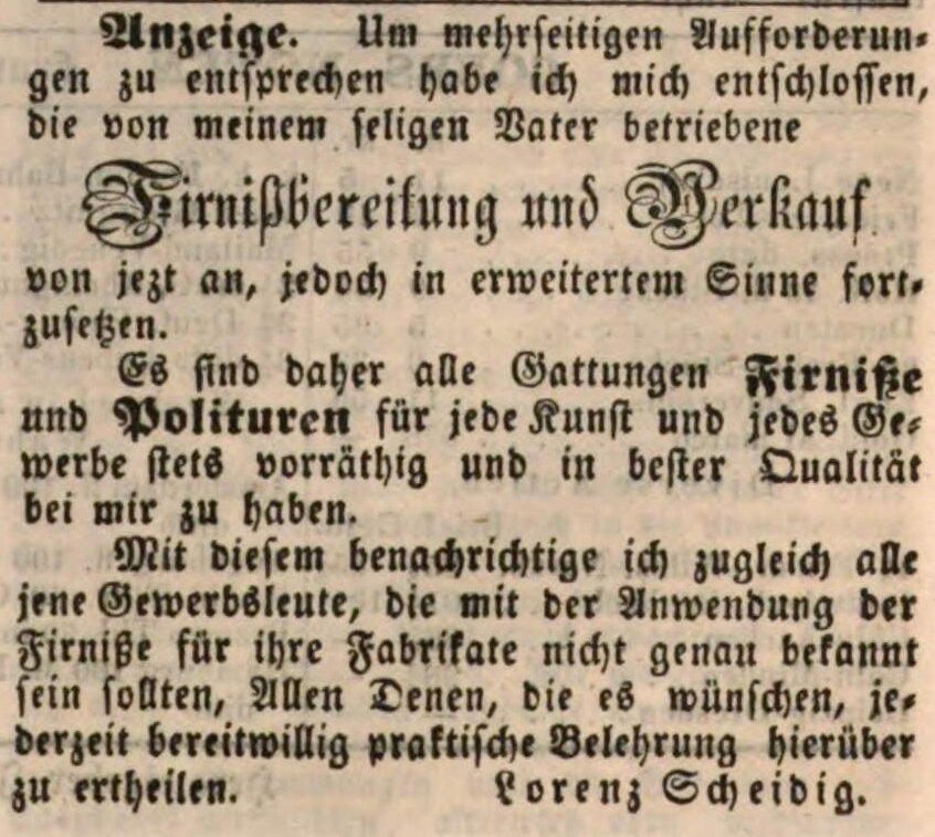 | Beschreibung | Werbeanzeige von Lorenz Scheidig, Mai 1846 | ||
