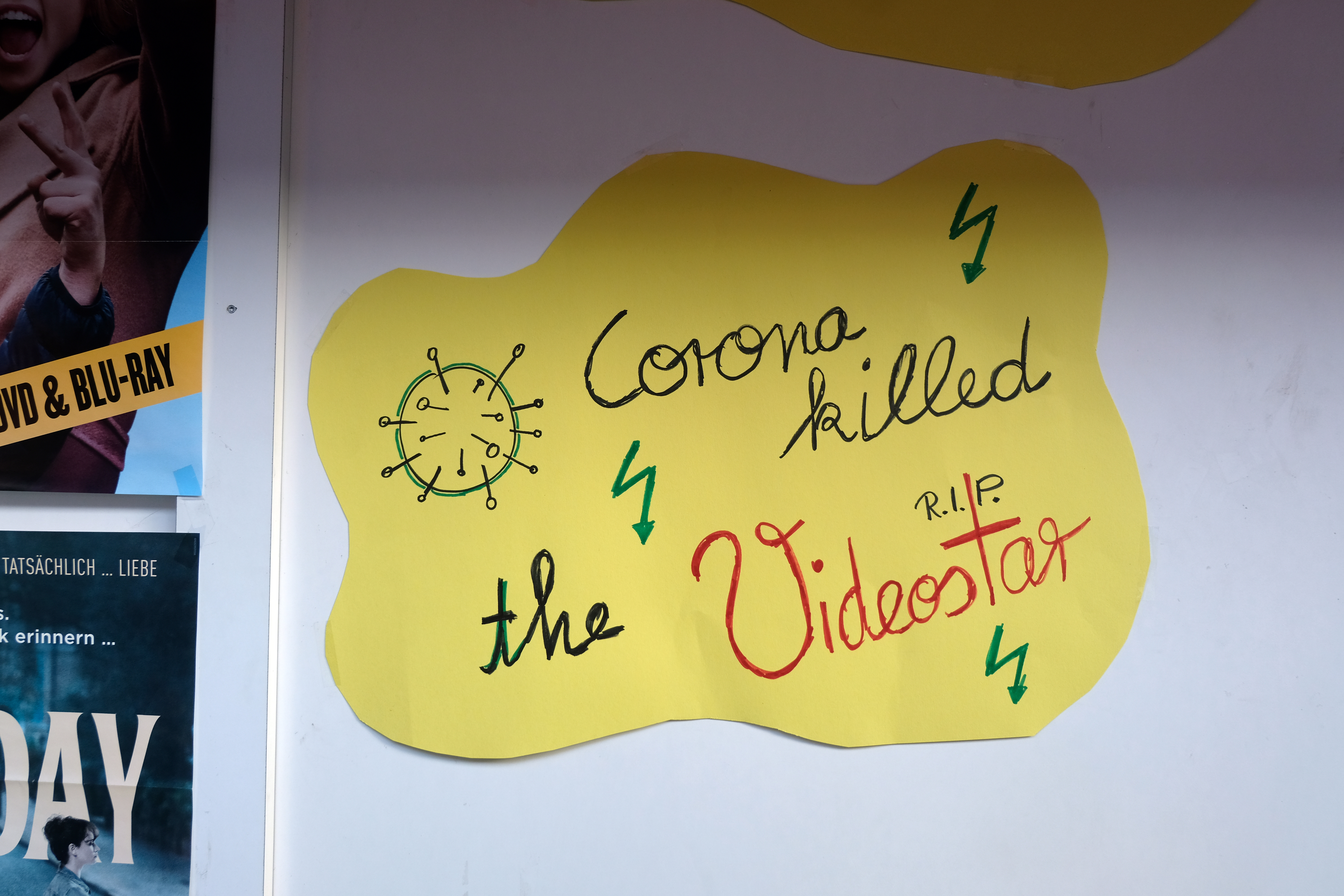 Hinweisschild zur Schließung der letzten Videothek in der Region in der Südstadt: "Corona killed the ... Hinweisschild zur Schließung der letzten Videothek in der Region in der Südstadt: "Corona killed the Videostar", 31. Dezember 2020<br>Urheber: Kamran Salimi<br>Erstellungsdatum: 31. Dezember 2020<br>Lizenz: cc-by-sa-3.0