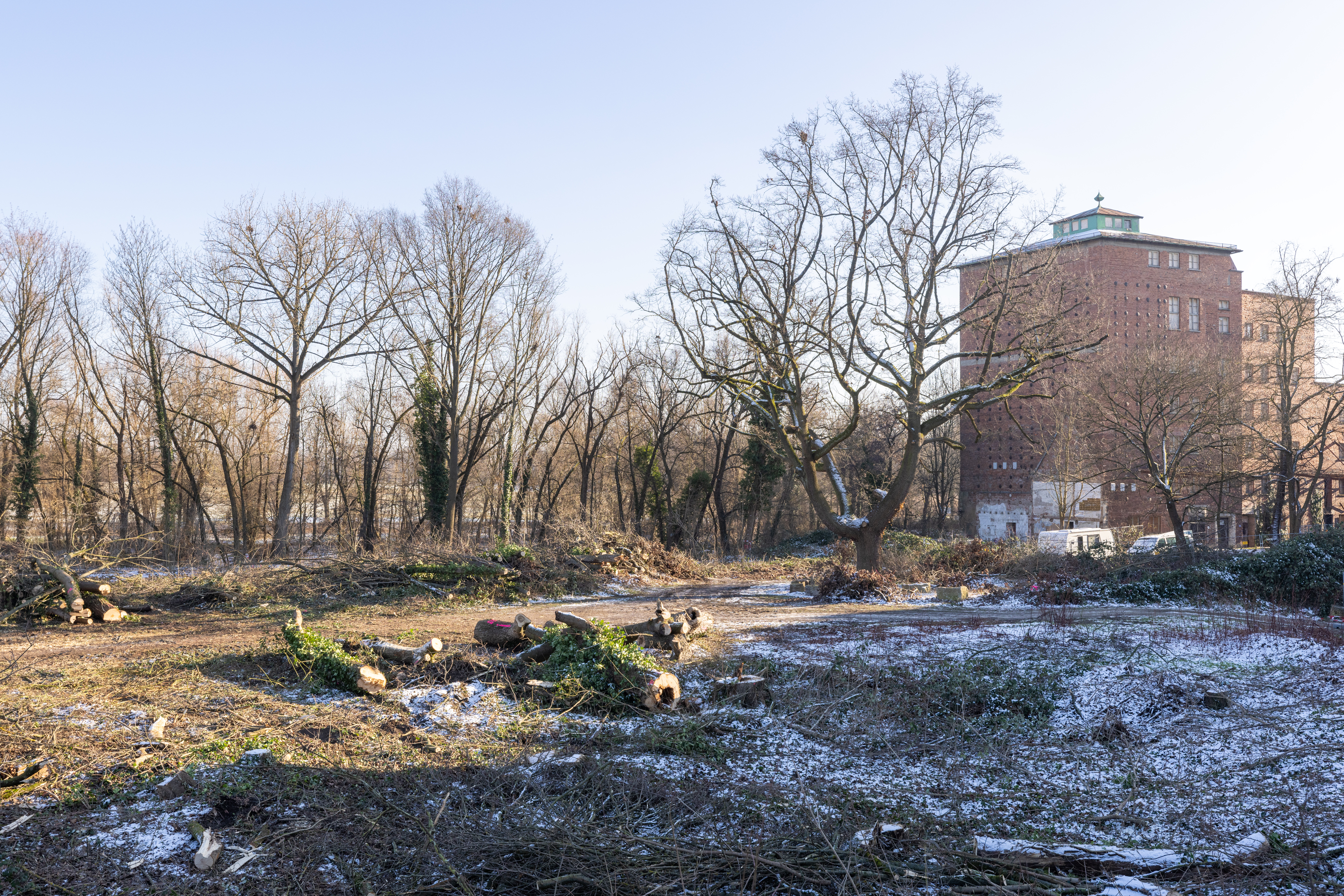 | Beschreibung | Rodungsarbeiten auf dem Baufeld des künftigen Schliemann-Gymnasiums, Jan. 2024 | ||