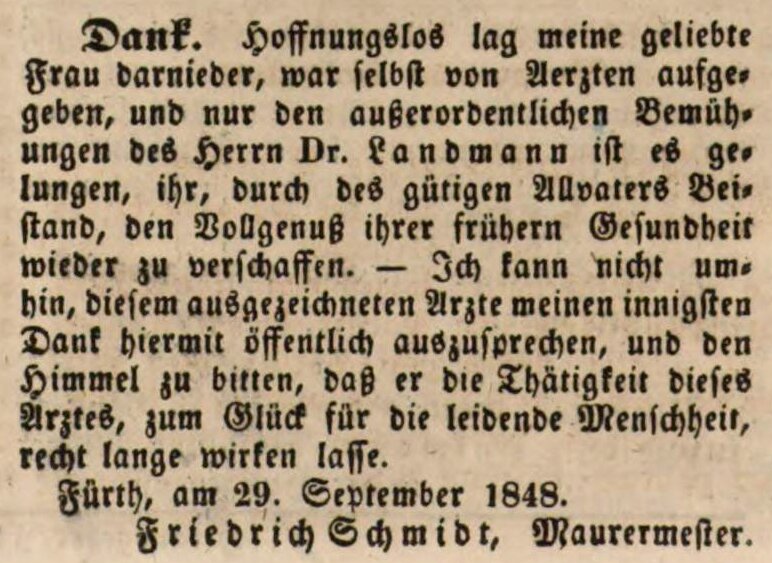 QuellangabenFürther Tagblatt, 30.09.1848 - online-Digitalisat der Bayerischen Staatsbibliothek