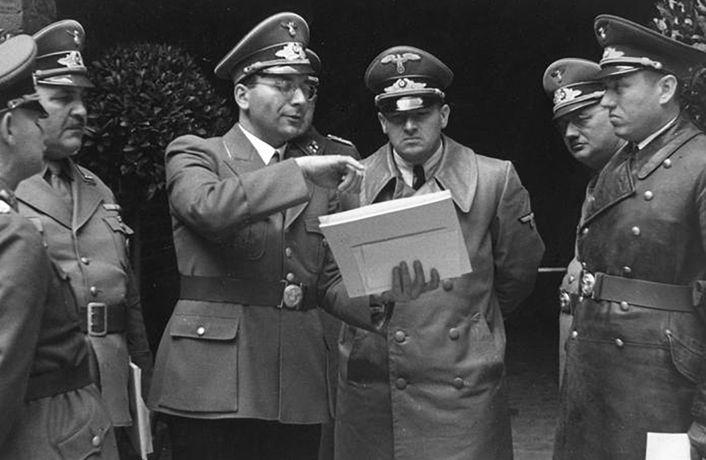 BeschreibungAdolf Schwammberger bei einer Führung mit Hans Frank durch Thorn, rechts im Bild Albert Forster und OB Franz Jakob