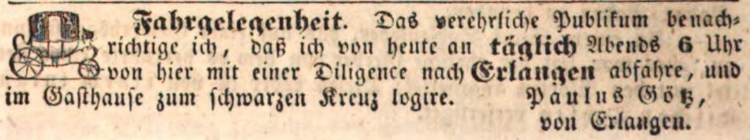 | Quellangaben | Fürther Tagblatt vom 1. September 1840 - online-Digitalisat der Bayerischen Staatsbibliothek | ||