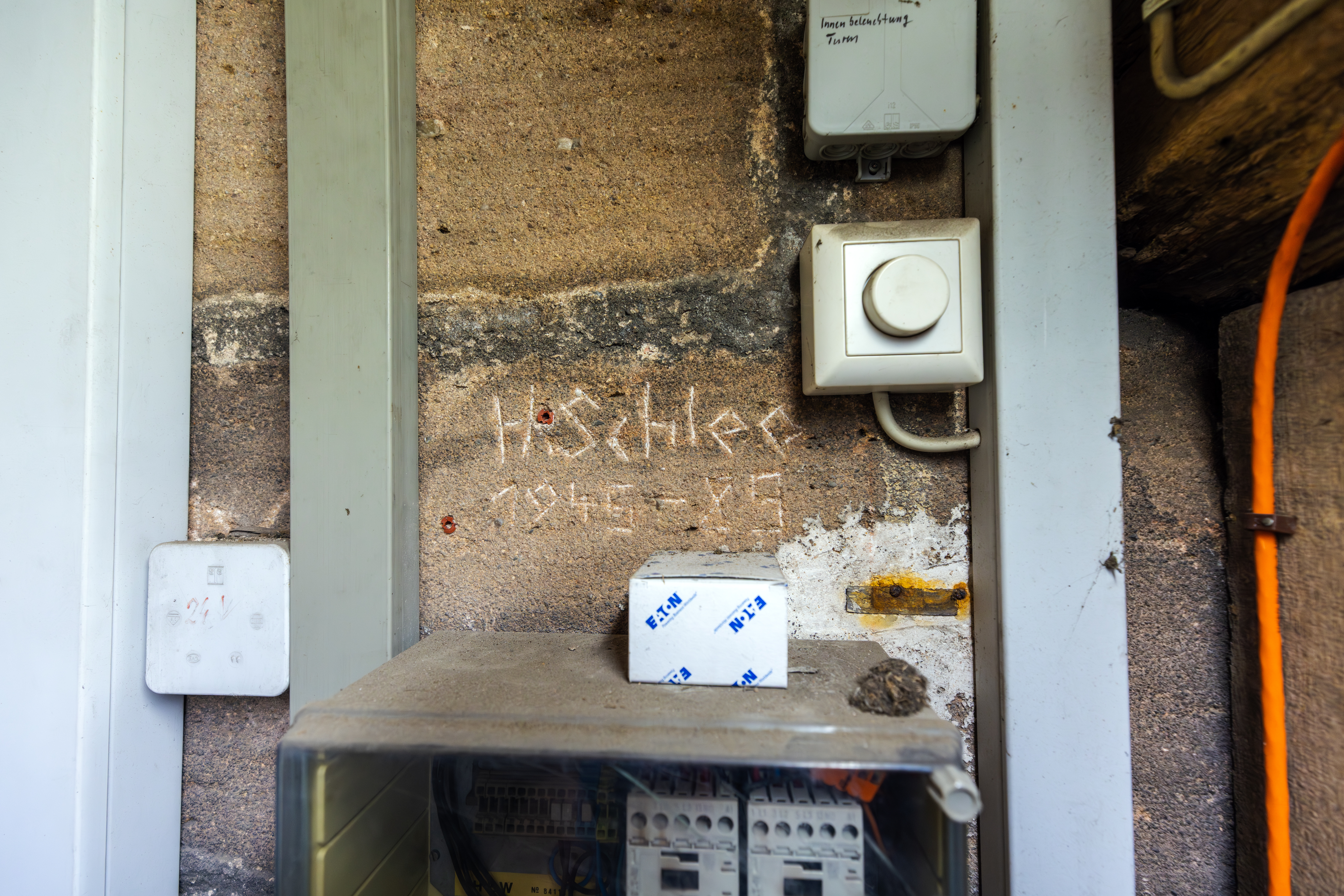 | Beschreibung | Schriftzeichen im Kirchturm der St.-Michael-Kirche, März 2026 | ||