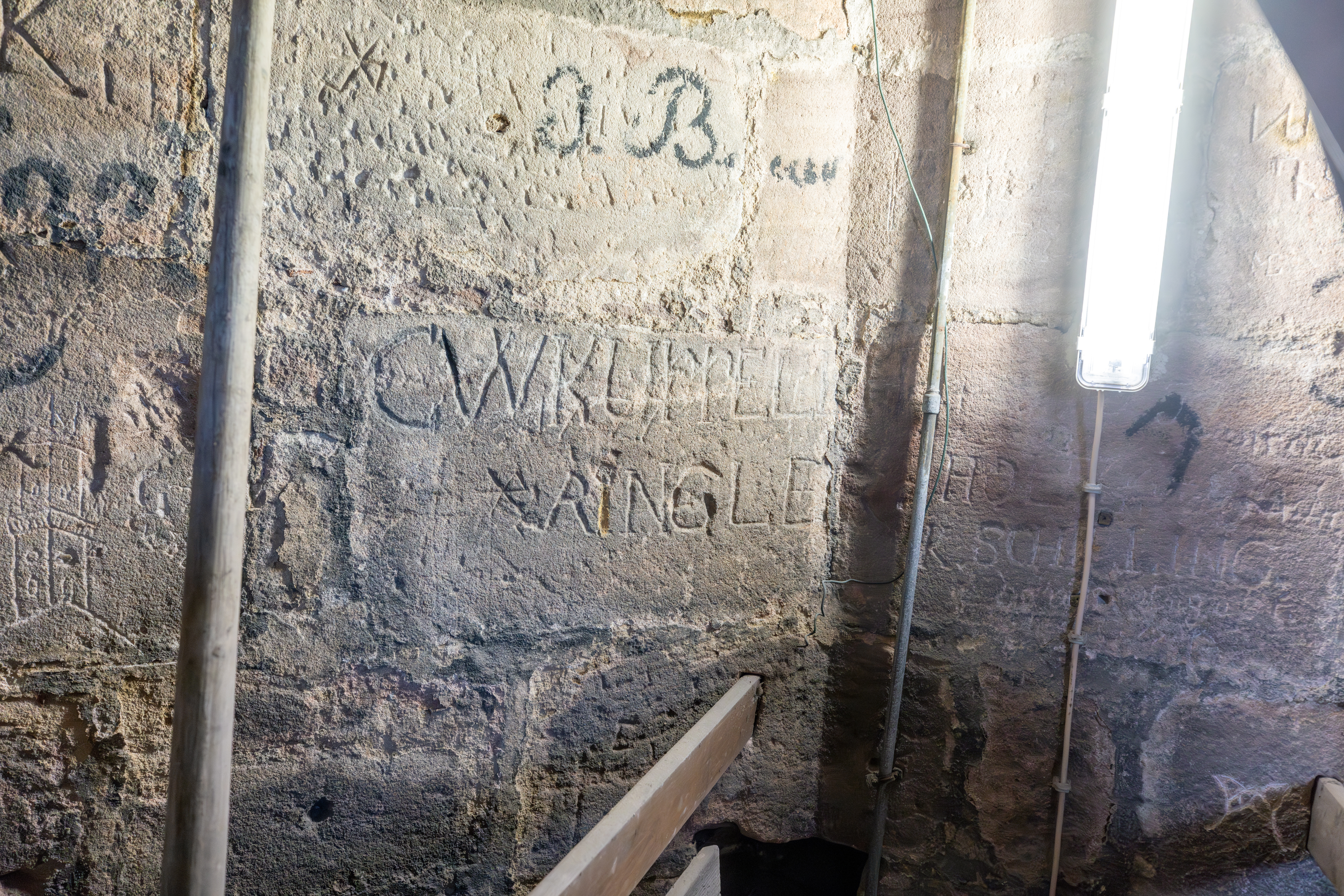 Beschreibung Eingeritzte Zeichen im Kirchturm von St. Michael, März 2026