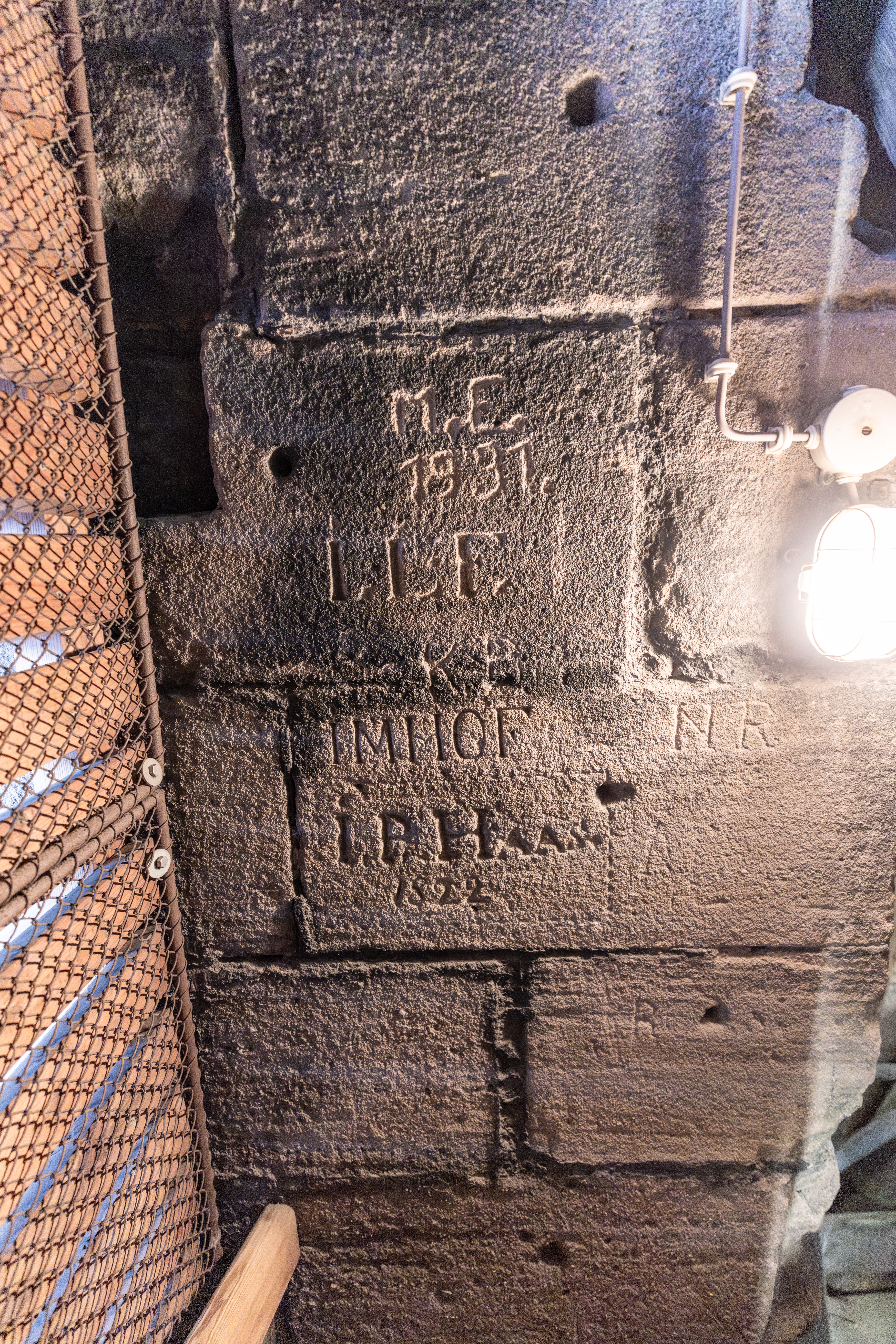 Beschreibung Schriftzeichen im Kirchturm der St.-Michael-Kirche, März 2026