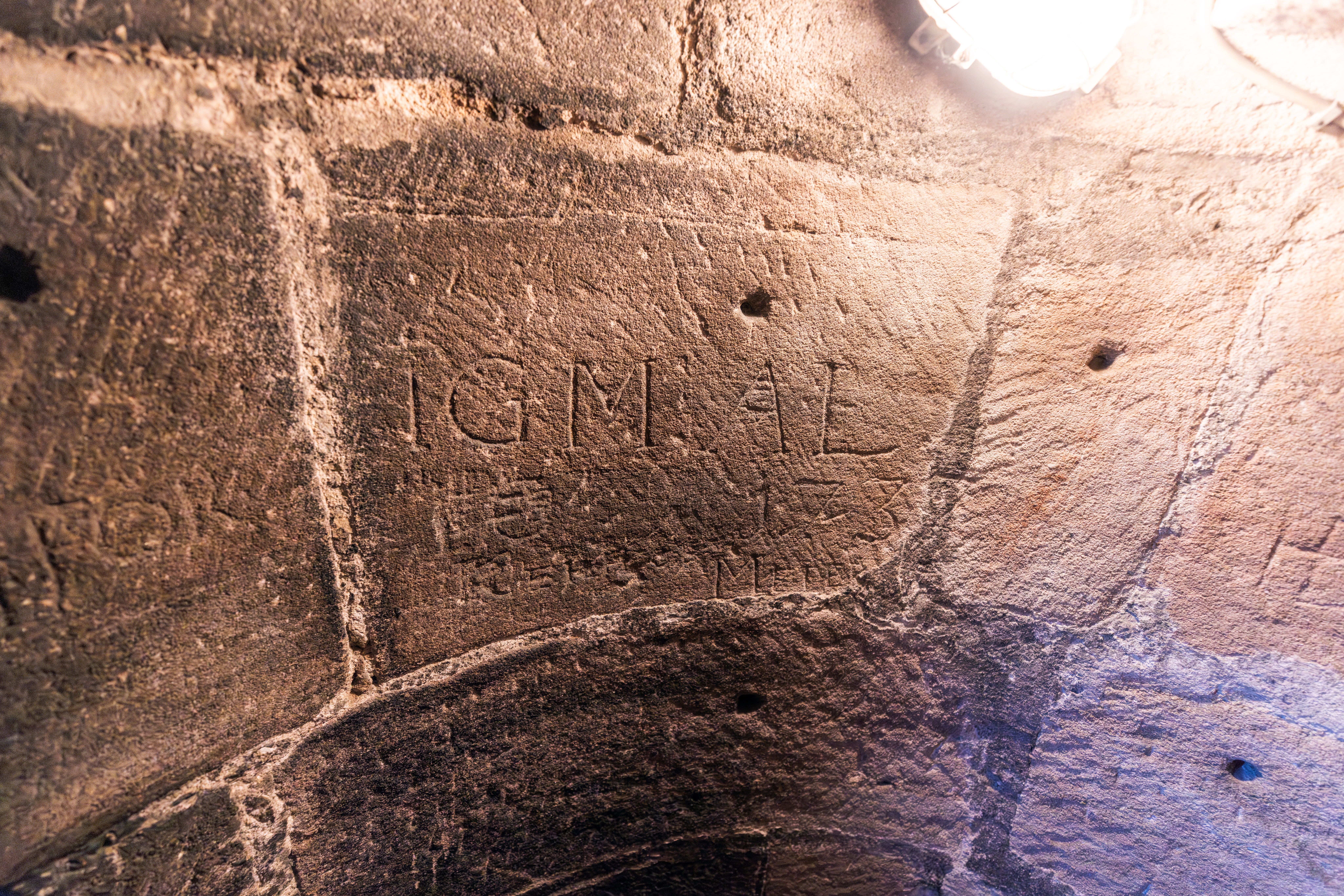 Beschreibung Schriftzeichen im Kirchturm der St.-Michael-Kirche, März 2026