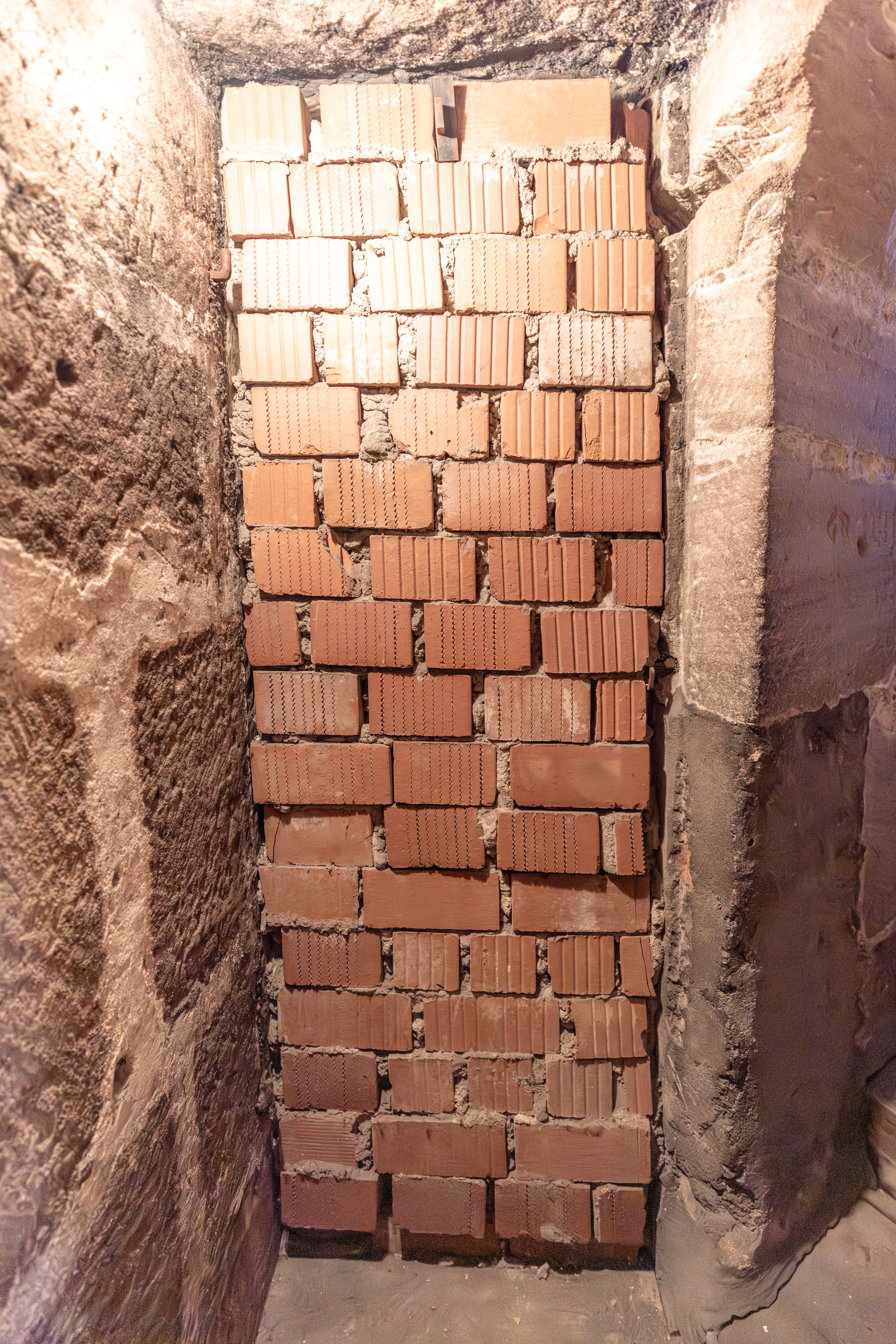 | Beschreibung | Zugemauerter Bereich im Treppenaufgang des Kirchturms der St.-Michael-Kirche, März 2026 | ||