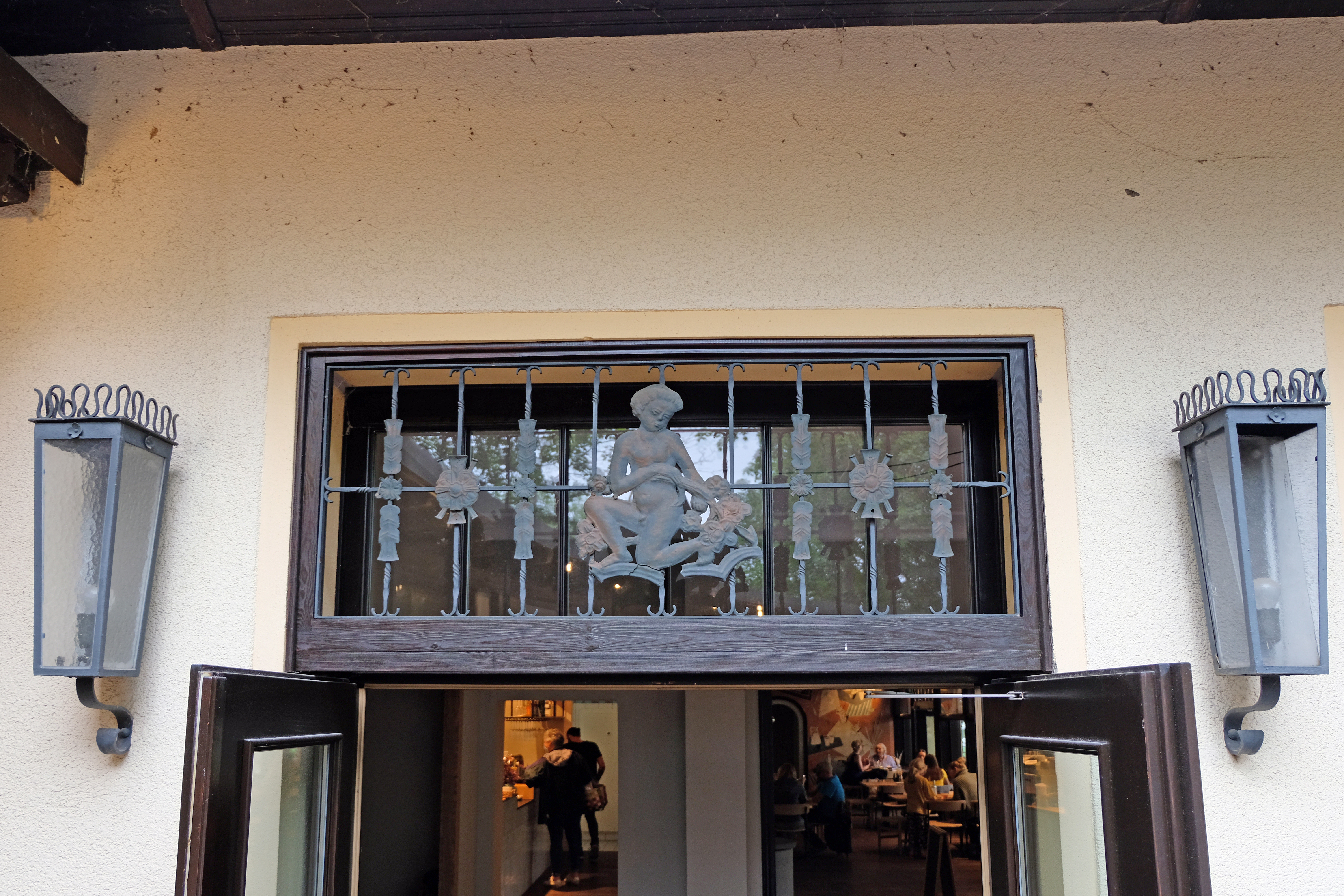 | Beschreibung | Das Stadtparkcafé im Stadtpark - Blechverblendung über der Westeingangstür, Juli 2021 | ||